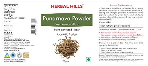 Herbal Hills Ashwagandha Powder and Punarnava Powder - 100 gms each for immunity booster liver and k