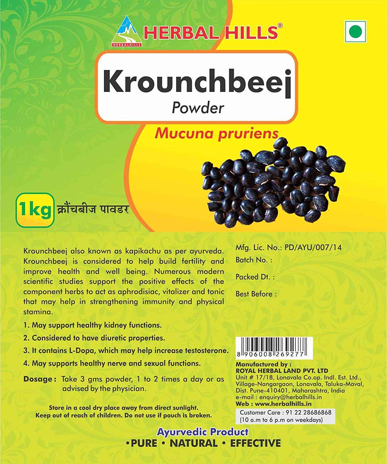 Herbal hills is a leading manufacturer supplier and wholesaler in india of ayurvedic product kounch beej powder. Kounch seed powder also called as mucuna pruriens is symbiotically processed with highly advanced technology.our products are specially selected and manually graded to give best results. The quality and efficacy is 100% guaranteed. Kounchbeej churan may support strength vitality revitality and male power. Krounch beej powder is made from seeds of mucuna pruriens. It has antioxidant aphrodisiac revitalising and diuretic properties
