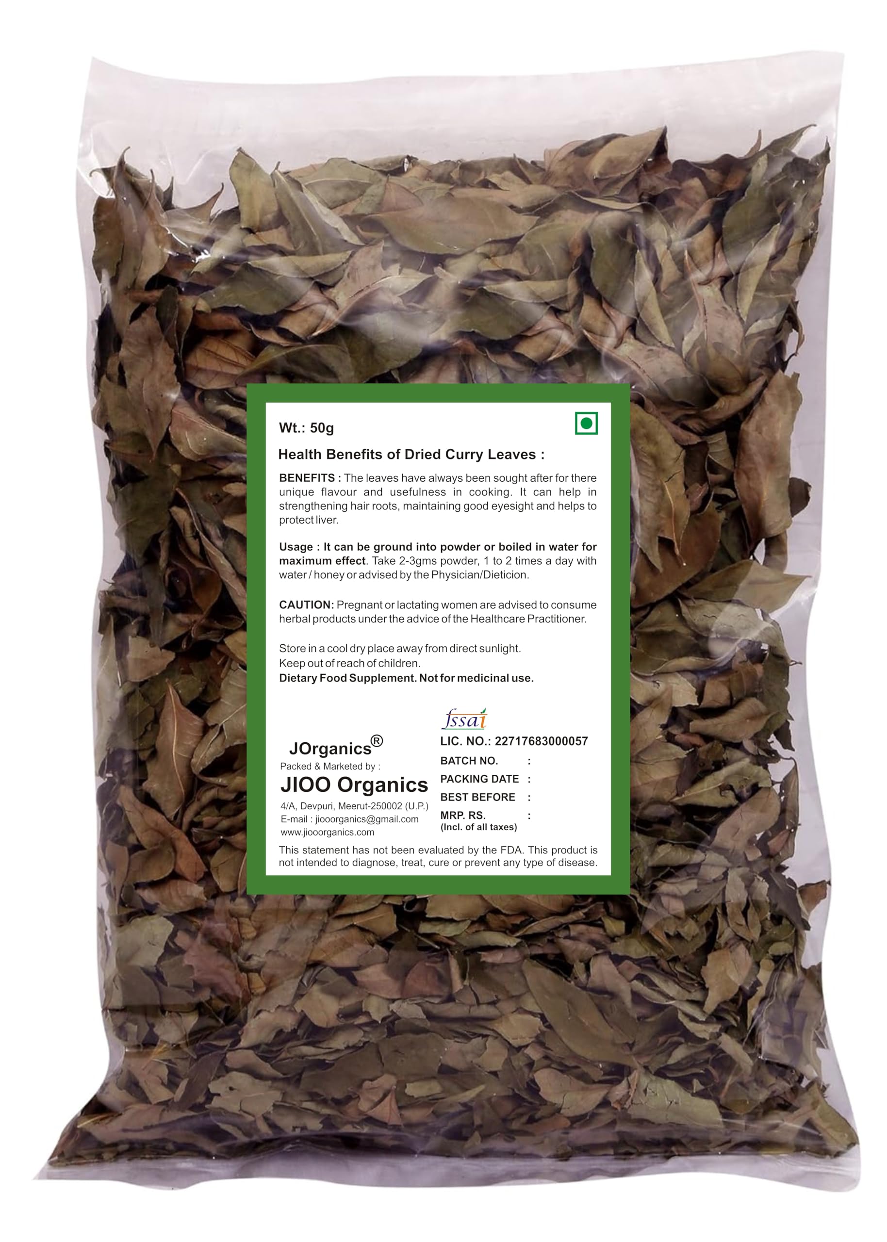 JOrganics Curry Leaves | Dried Curry Leaves | Murrya koenigii | Dry Kadi Patta | Curry Leaf | Karuvepillai | Kadi Patta | Pack Of 50 g