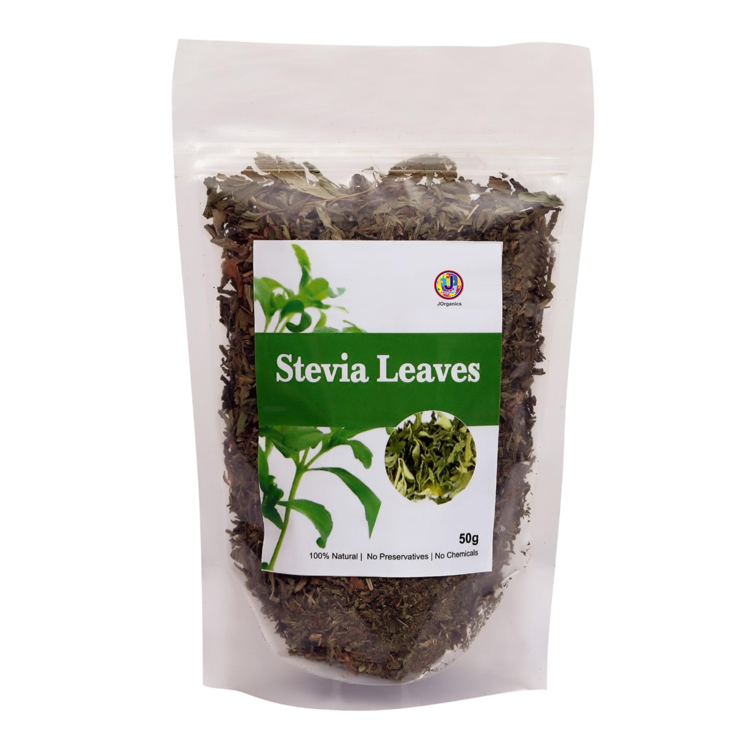 JOrganics Green Stevia Whole Leaf (50 Gm) | Natural Stevia Whole Leaf| Zero Calories | Vegan | Natural Sweetener | Keto & Diabetic Friendly