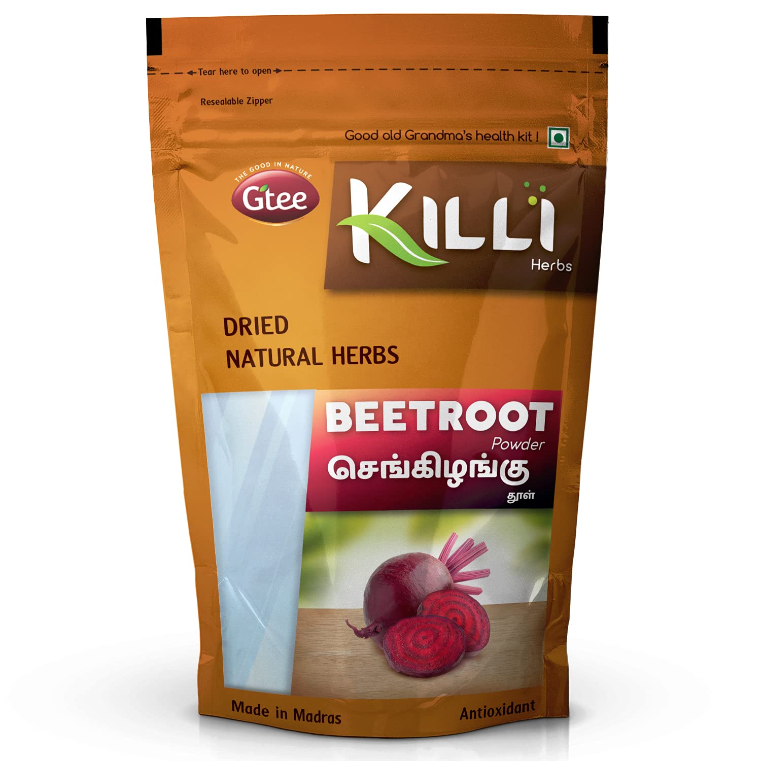 KILLI BEETROOT POWDERHEALTH BENEFITSBeetroot is rich in powerful antioxidants and minerals like potassium iron magnesium.HOW TO MAKEMix one teaspoon 3-5g of Killi Beetroot powder to hot water or hot milk. Stir it well and serve. Add palm sugar to enhance the taste if required.KILLI HERBS & SPICESKILLI having its special care and scientific approach in every stop of processing of herbs to retain the active principle taste and aroma explores the value of traditional herbs with uncompromising quality and taste to customers. We believe that the traditional wisdom is the wealth of our Nation. KILLI's unique herbal combinations offers its customers the best healthy solutions. KILLI is a Registered Trademark of Gtee