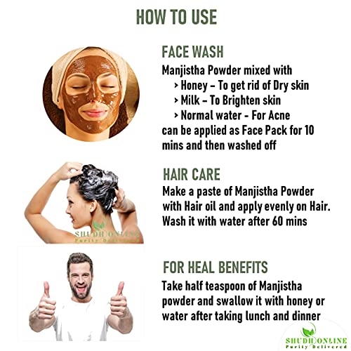 Shudh Online Manjistha Powder Majith Organic Root Powder (250 Grams) Indian Madder (Eating Skin whitening Face Hair) Manjishtha Manjishta Manjishta Manjista