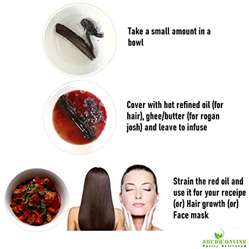 Shudh Online Ratanjot Root Alkanet Root whole (1000 grams / 1 Kg) - Cooking Hair Fall Hair Growth Skin Burns Rattan Jot Vembada Vembalam pattai Laljadi