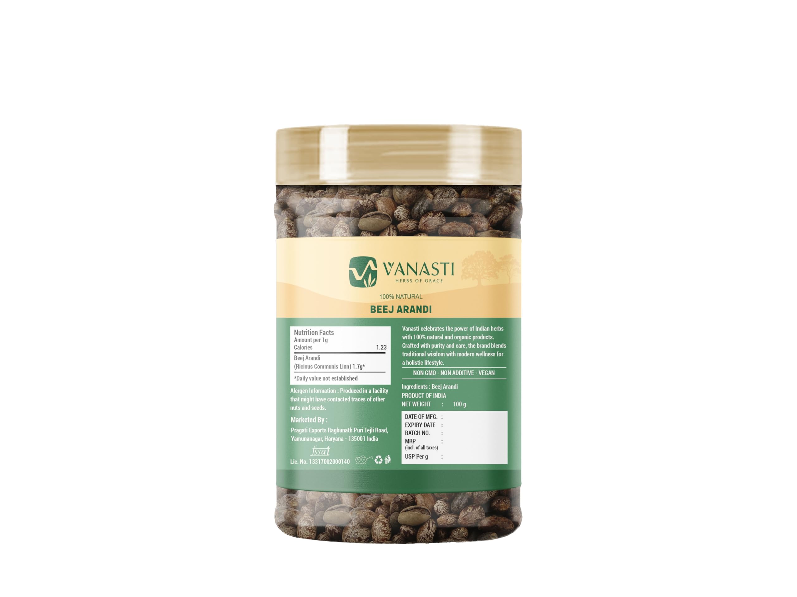 VANASTI Beej Arandi | Ricinus Communis Linn | Castor Seeds | 100 gram