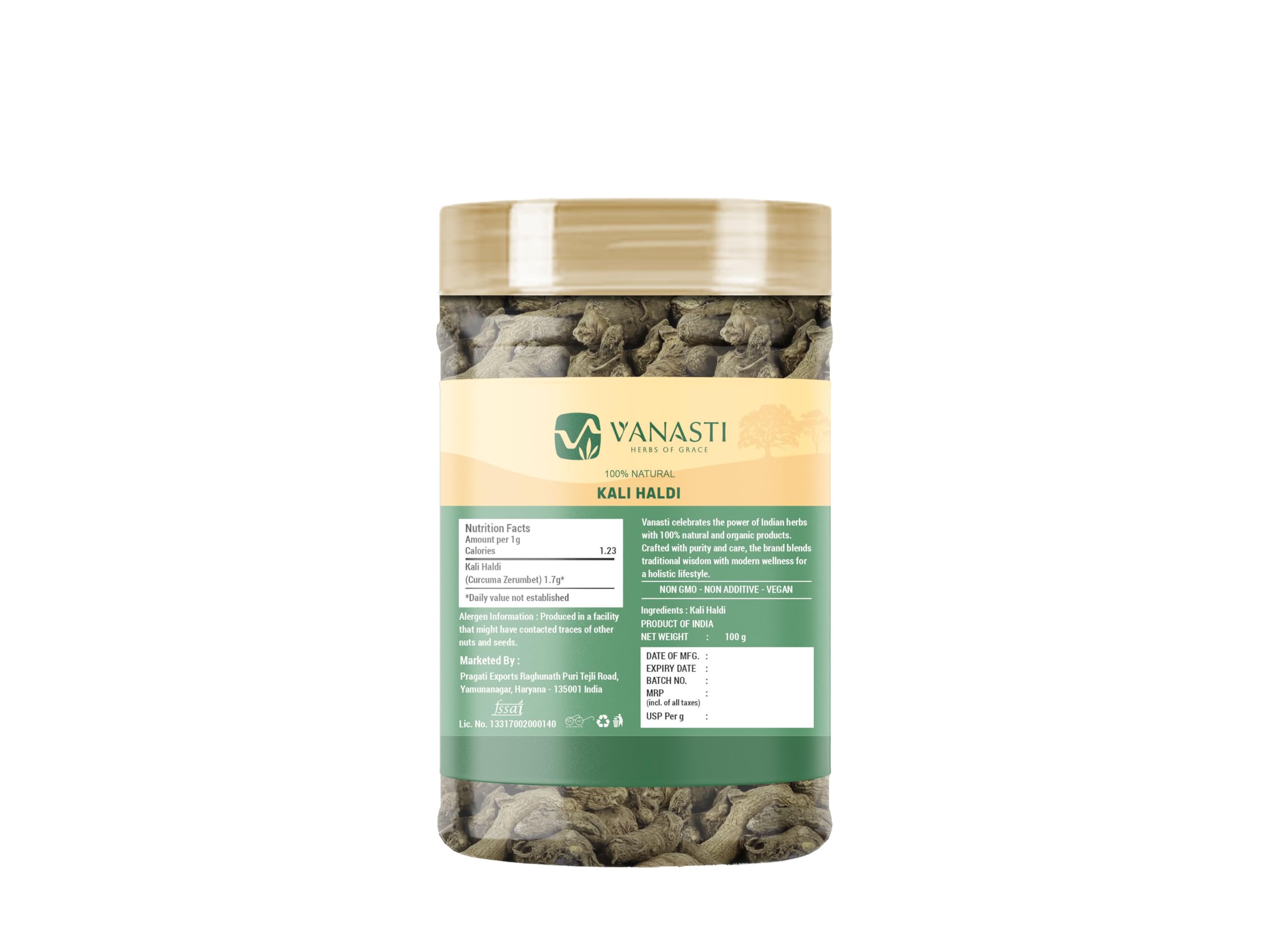 VANASTI Kali Haldi | Nar Kachur | Narkchaur | Curcuma Zerumbet | Zedoary Root | Black Turmeric | 100 gram