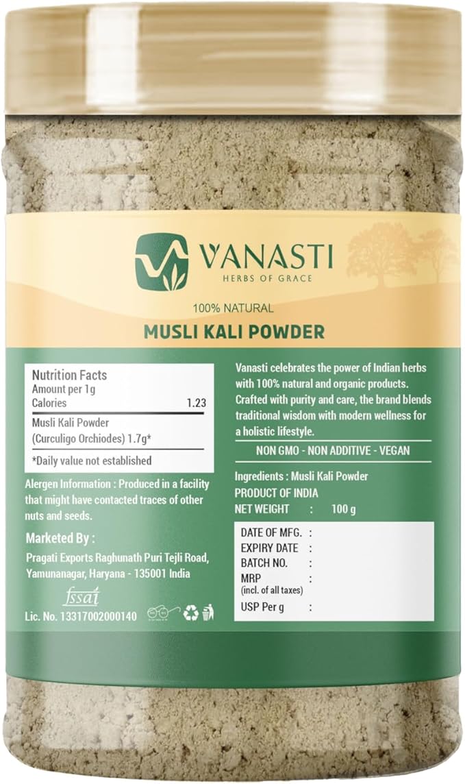 VANASTI Musli Kali Powder | Curculigo Orchiodes | Black Musli Powder | 100 gram