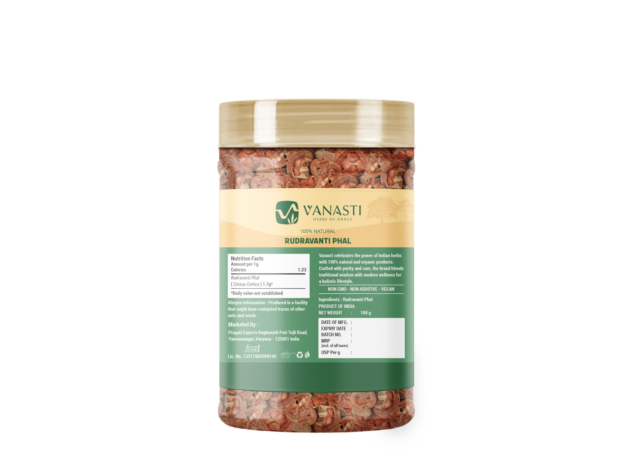 Rudravanti Phal (Cressa cretica), also known as Littoral Bindweed, is a small shrub native to coastal and saline regions of India. This hardy plant is known for its compact form and pale green leaves. It contains natural plant compounds including flavonoids, terpenoids, and phytosterols. The fruit and other parts are used in herbal blends and local botanical preparations.