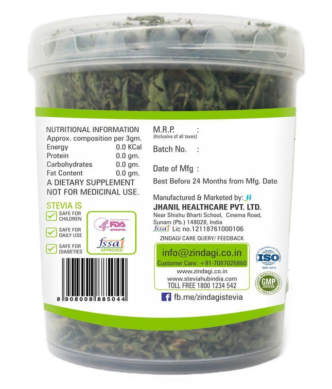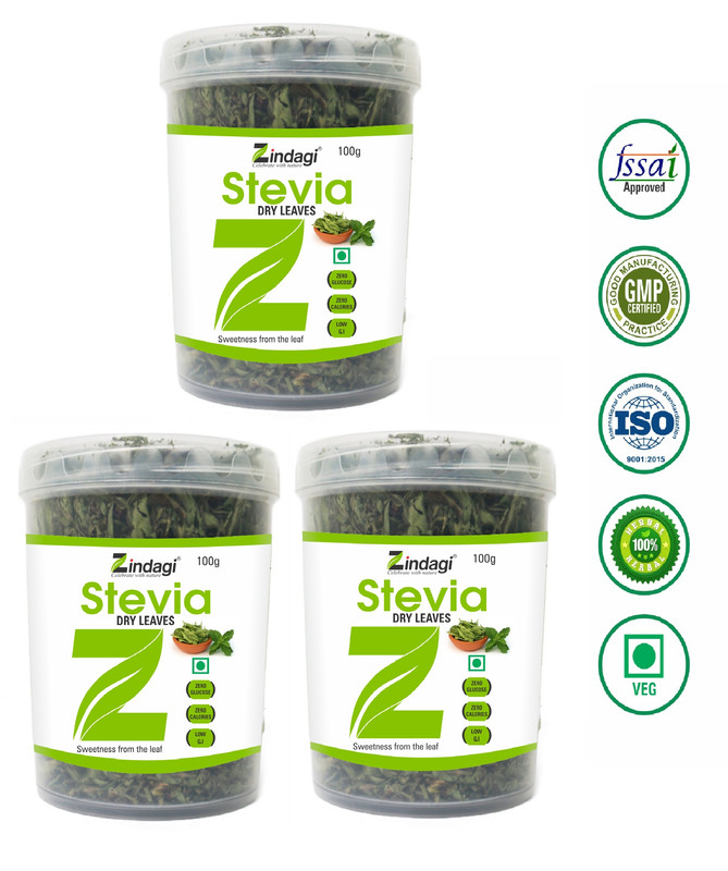 Zindagi Stevia is a natural sweetener, comes in various forms with proven health benefits. Stevia leaf is the most natural form to consume. People with the habit of drinking Luke-warm water can use by add-on leaves to get the direct benefit of the stevia plant (Stevia Rebaudiana). Natural Stevia sugar-free helps you to reduce weight and stay fit and active. By Adding stevia leaves (sweet leaf) in your daily routine shall show you outcome in no time. Suitable for sugar-sensitive people, Stevia extract is 300 times sweeter than regular sugar. Besides regulating blood sugar and lowering down sugar levels, stevia sugar also curbs tobacco and alcohol cravings. Without any change in taste, Stevia gives the right amount of vitamins and minerals, like vitamin C and A, rutin, zinc, magnesium and iron. Stevia Dry Leaves are much better than Stevia Tablets. Stevia sweeter is better than Splenda & any other artificial Sugar-Free sweeteners. Zindagi Stevia products are now available in Stevia Liquid, Stevia powder, Stevia white powder & Stevia sachets.