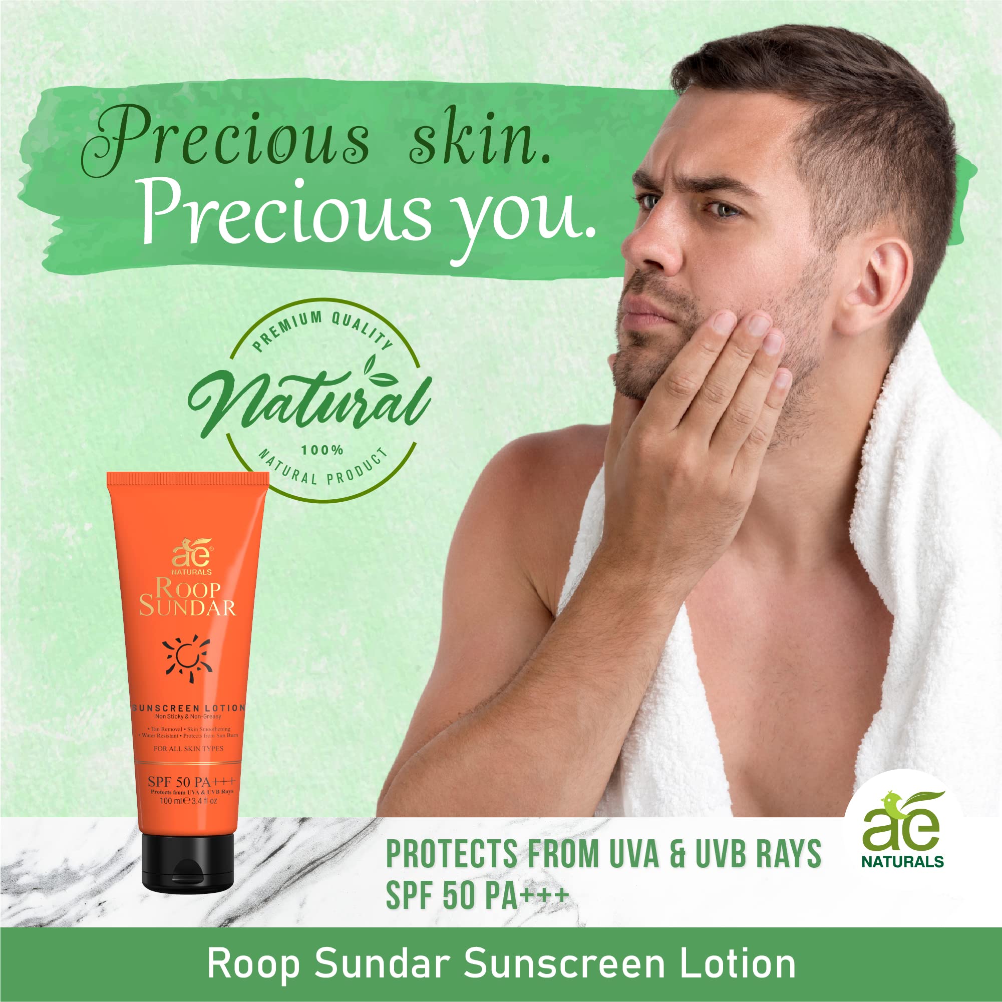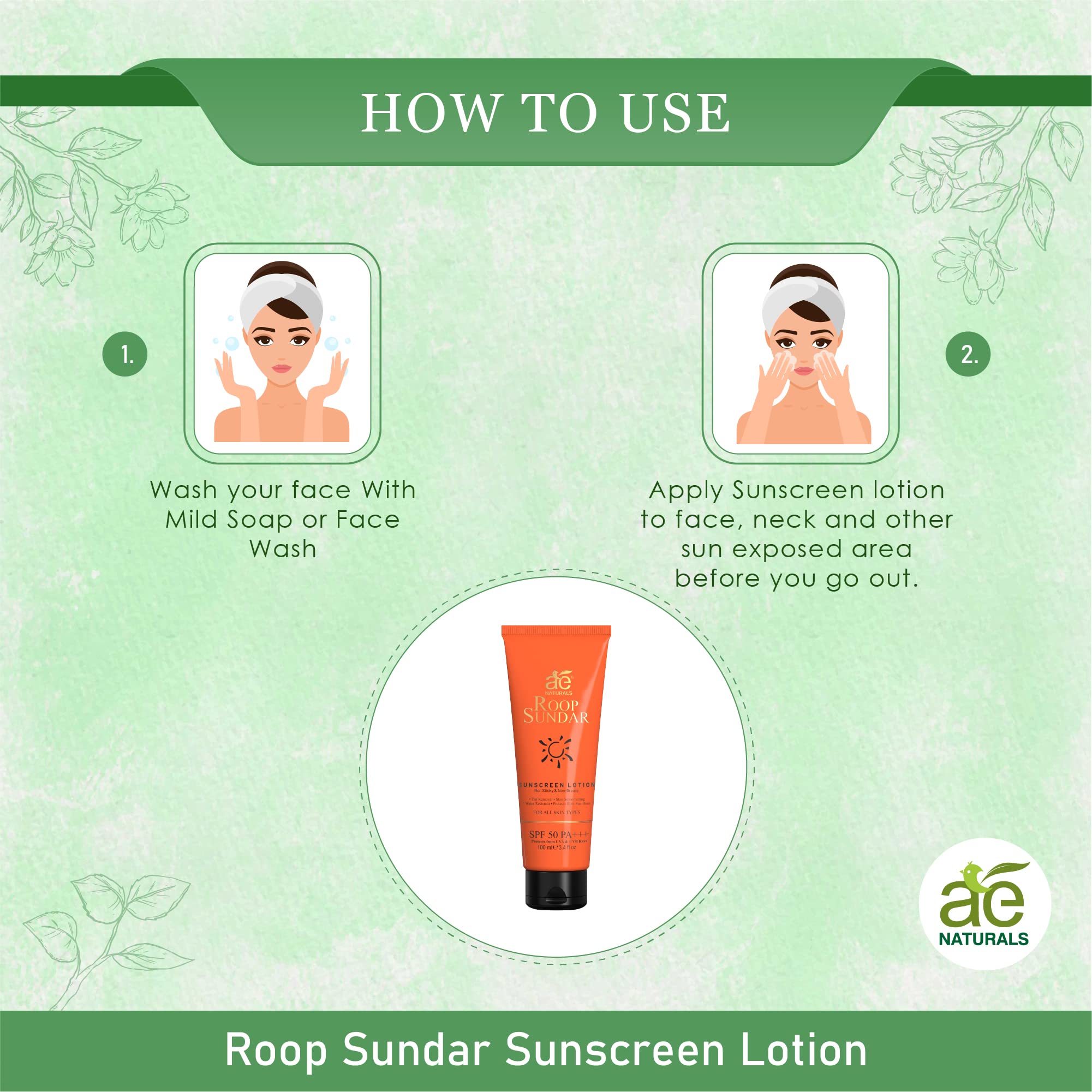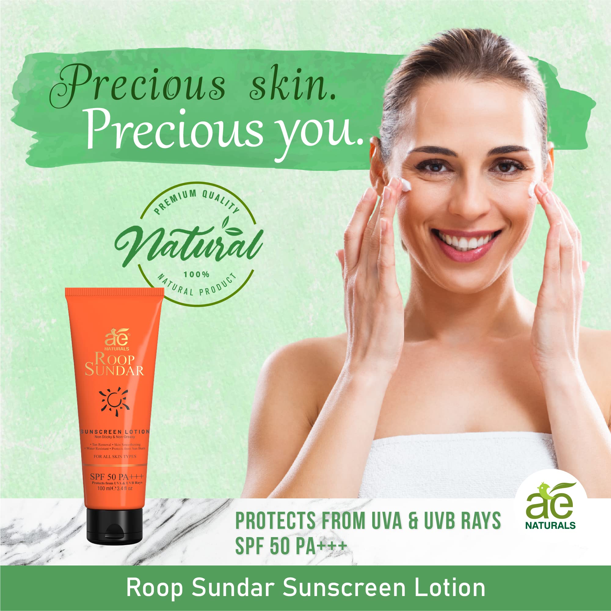 For Indian Skin: AE Naturals Roop Sundar Sunscreen Lotion is designed to cater to the unique needs of Indian skin tones. It easily gets absorbed into the skin and can be used under makeup without leaving any white cast. The superior matte finish gives you