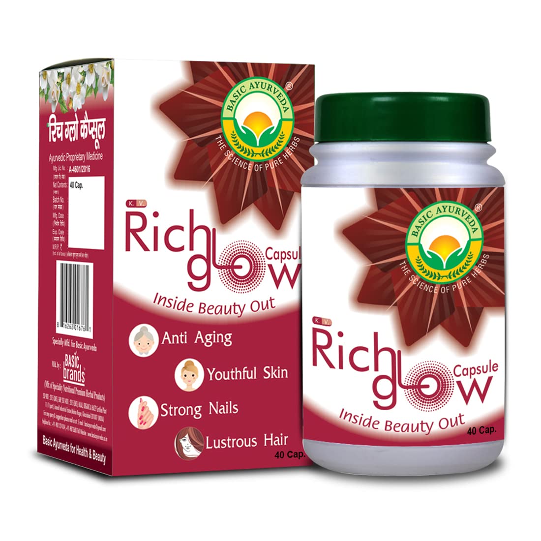 • Basic Ayurveda Rich Glow Capsule with all the goodness of nature come in a 40 Capsules pack and are a certified product that is safe to consume daily.