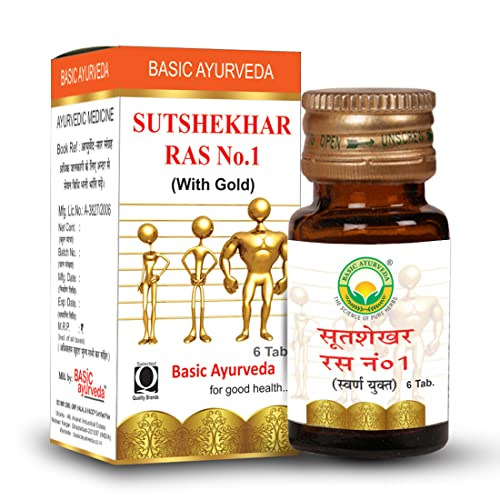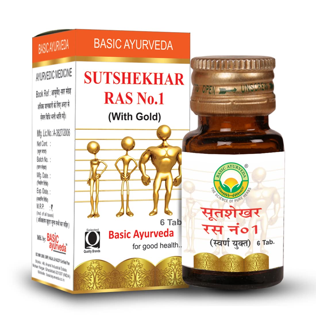 BASIC AYURVEDA Sutshekhar Ras No.1 With Gold 6 Tablets | Ayurvedic Supplements For Stomach Health | A Powerful Blend Of Natural Ingredients Extra Strength Formula
