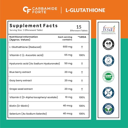 HomeHealth & PersonalDiet & NutritionHealth SupplementsCarbamide Forte Japanese Reduced L Glutathione 600mg Tablets For Skin Health|L Glutathione with Vitamin C Hyaluronic Acid,Vitamin E,& Biotin (Pack of 2),2 count,15 capsules