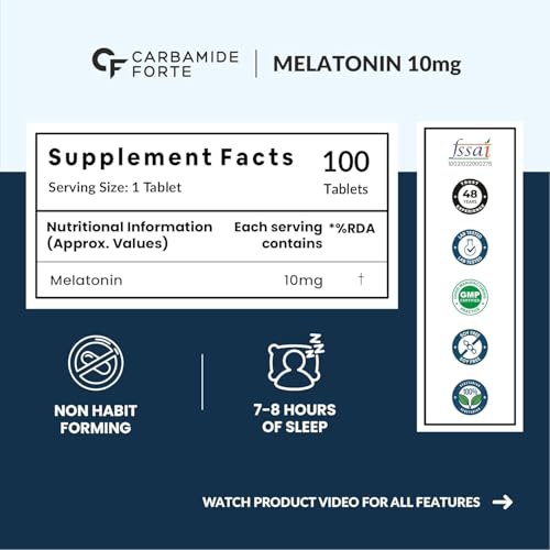 Carbamide Forte Melatonin 10 mg Pills | Sleep Supplement for Better Sleep | Melatonin Tablet for Restful Deep Sleep - 100 Veg Tablets