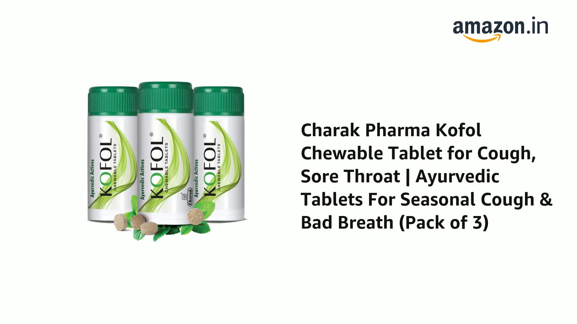 Charak Pharma Kofol Chewable Tablet for Cough, Sore Throat | Ayurvedic Tablets For Seasonal Cough & Bad Breath Each 60 Tablet (Pack of 3)