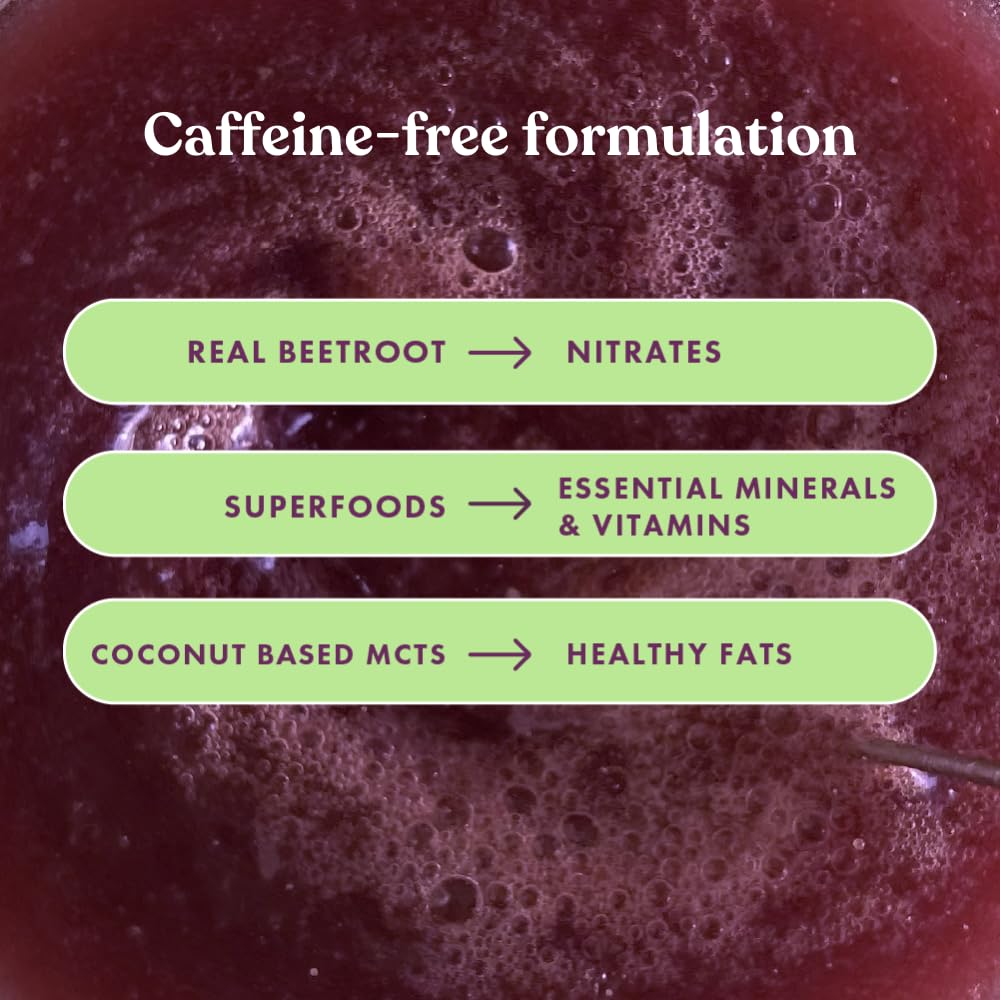 The supplement contains key ingredients including beetroot MCT black salt and cordyceps each contributing to the overall performance benefits. Beetroot enhances cardiovascular endurance and oxygen delivery to muscles while MCT provides quick energy aids i
