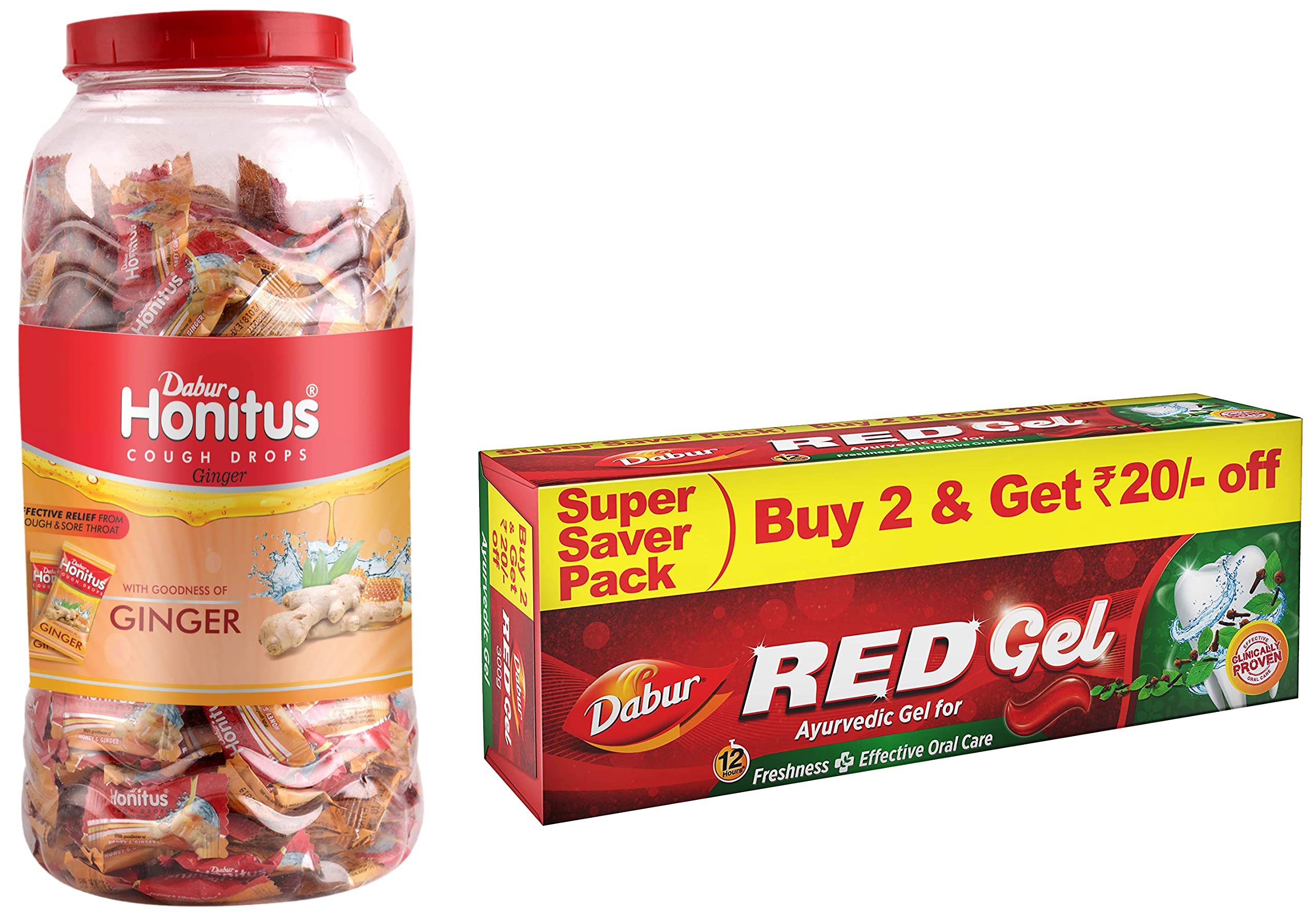 Dabur Red Gel 300g (150g x 2 Pack of 2) Toothpaste Controls bad breath plaque gingivitis toothacheNow give yourself the promise of scintillating freshness and effective oral care with Dabur Red Gel. Made with 11 potent herbs appraised in Ayurveda the effectiveness of Dabur Red Gel Natural Toothpaste has been scientifically tested and proven. The herbal formulation works against oral problems like bad breath plaque gingivitis toothache yellow teeth cavity gum bleeding and ensures healthy teeth and gums without any side-effects.â It has Lavang oil fights toothache and works as an anticaries agent - In Ayurveda it has been used for treatment of Gingivitis Cavities and Bad breath. Pudina Satva maintains fresh breath for hours and is known to be a mouth cleanser. Tomar Beej the essential oil extracted is known to cure toothache and cavities Sunthi is known to have anti-inflammatory and antibacterial properties.Dabur Honitus Cough Drops Ginger Provides Effective Relief From Cough And Sore Throat Red - 100 Tablets - 250gThe 135-year-old ayurvedic company promoted by the burman family started operating in 1884 as an ayurvedic medicines company. From its humble beginnings in the bylanes of calcutta dabur india ltd has come a long way today. Overall dabur has successfully transformed itself from being a family-run business to become a professionally managed enterprise. What sets dabur apart from the crowd is its ability to change ahead of others and to always set new standards in corporate governance & innovation.