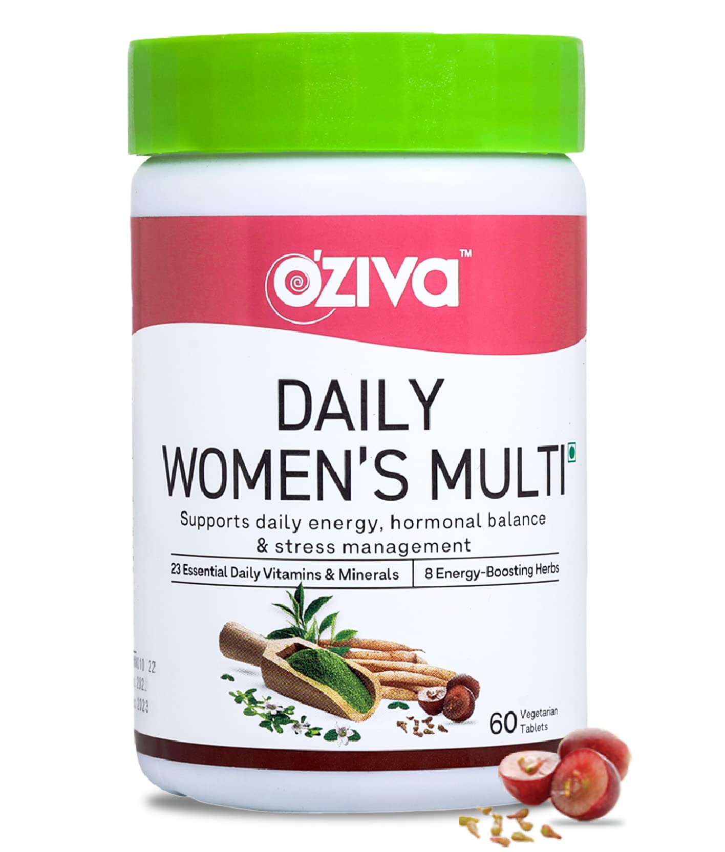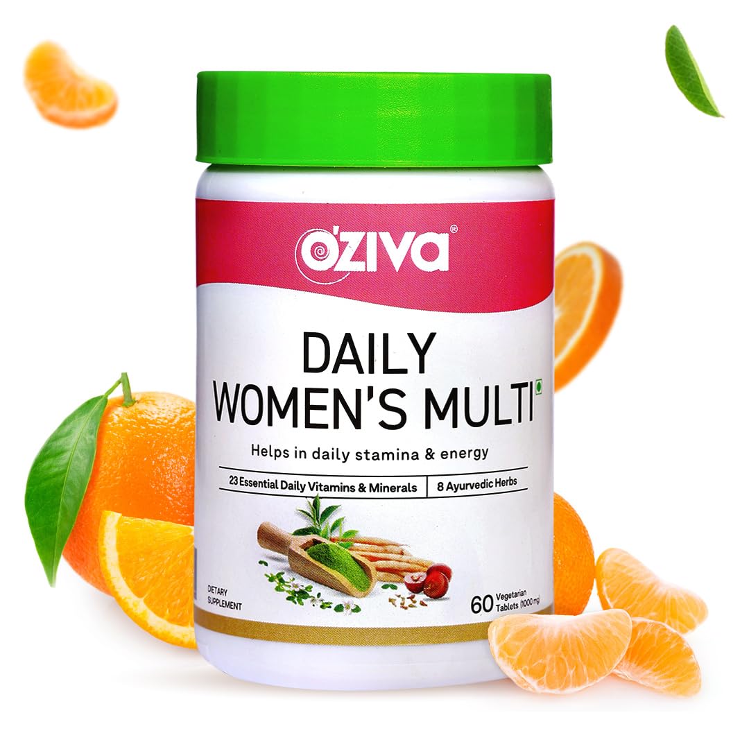 DAILY MULTIVITAMINS FOR WOMENS ENHANCED ENERGY LEVELS: OZiva Plant Based Daily Womens Multivitamins meet 100% RDA (Recommended Daily Allowance) of 21 essential nutrients that are needed for overall health which ensures sustained energy levels throughout