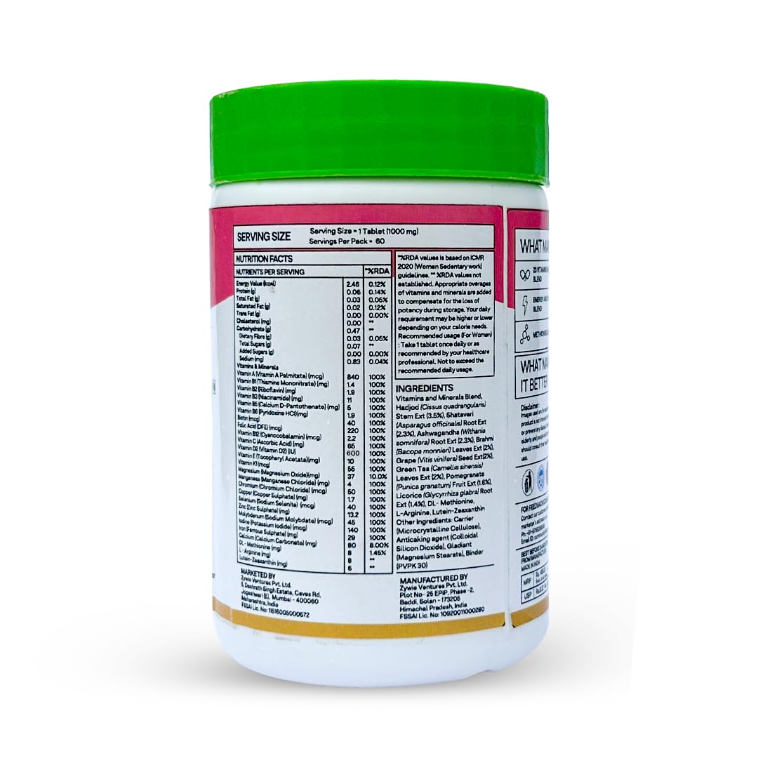 Daily Women Multivitamin Tablets | Multivitamins for Women Daily Energy, Holistic Health & Hormonal Balance | with 23 Daily Multivitamins & Minerals, Shatavari, Brahmi, 60 Capsules