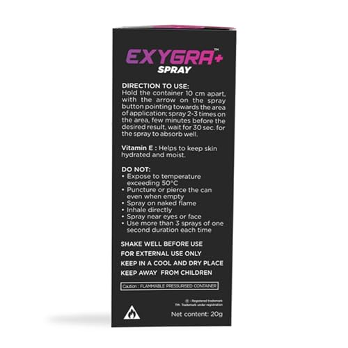 • How to Use: Hold the spray 10cm away from the area. Spray in short bursts 3-4 times should be enough. Spray the desired area. 1-2 mins prior the activity. Wait for 30 secs for the spray to absorb.
