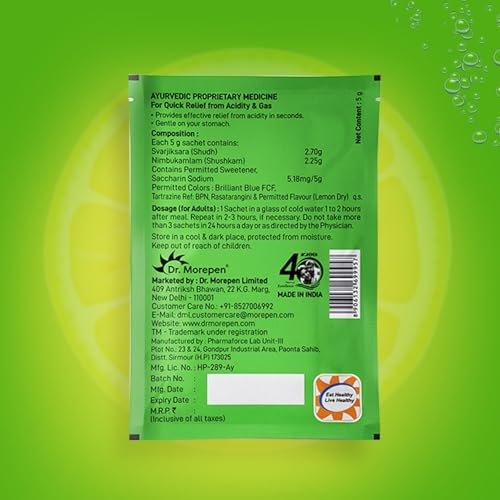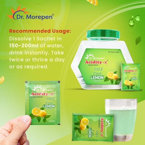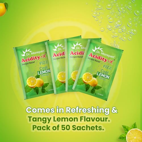 Dr Morepen presents Acidity-X Fizz to provide quick relief from acidity gas and indigestion. Comes in a refreshing & tangy lemon flavour. Pack of 50 sachets.