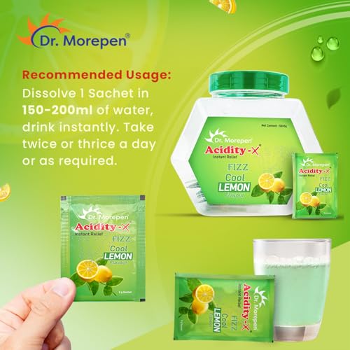 DR. MOREPEN Acidity-X Fizz - Instant Relief From Acidity, Indigestion & Gas | Comes in Refreshing & Tangy Lemon Flavour | Pack of 50 Sachets