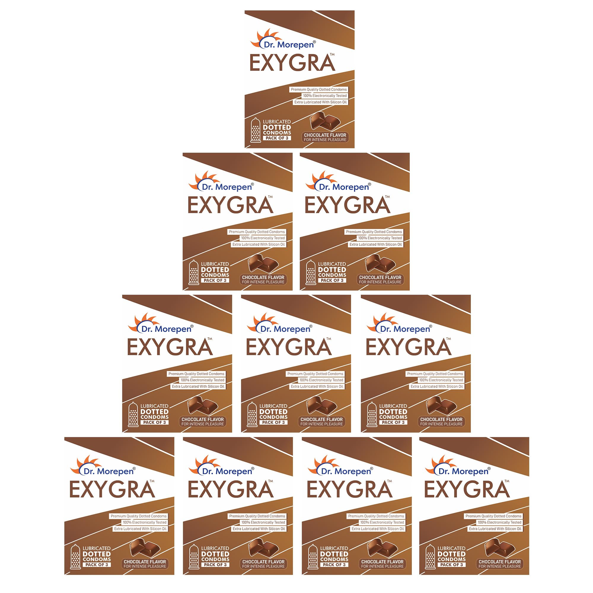 Dr. Morepen Exygra Condoms- Ultra-thin, Lubricated, Extra Dotted, Chocolate Flavour (30 Count (Pack of 10)