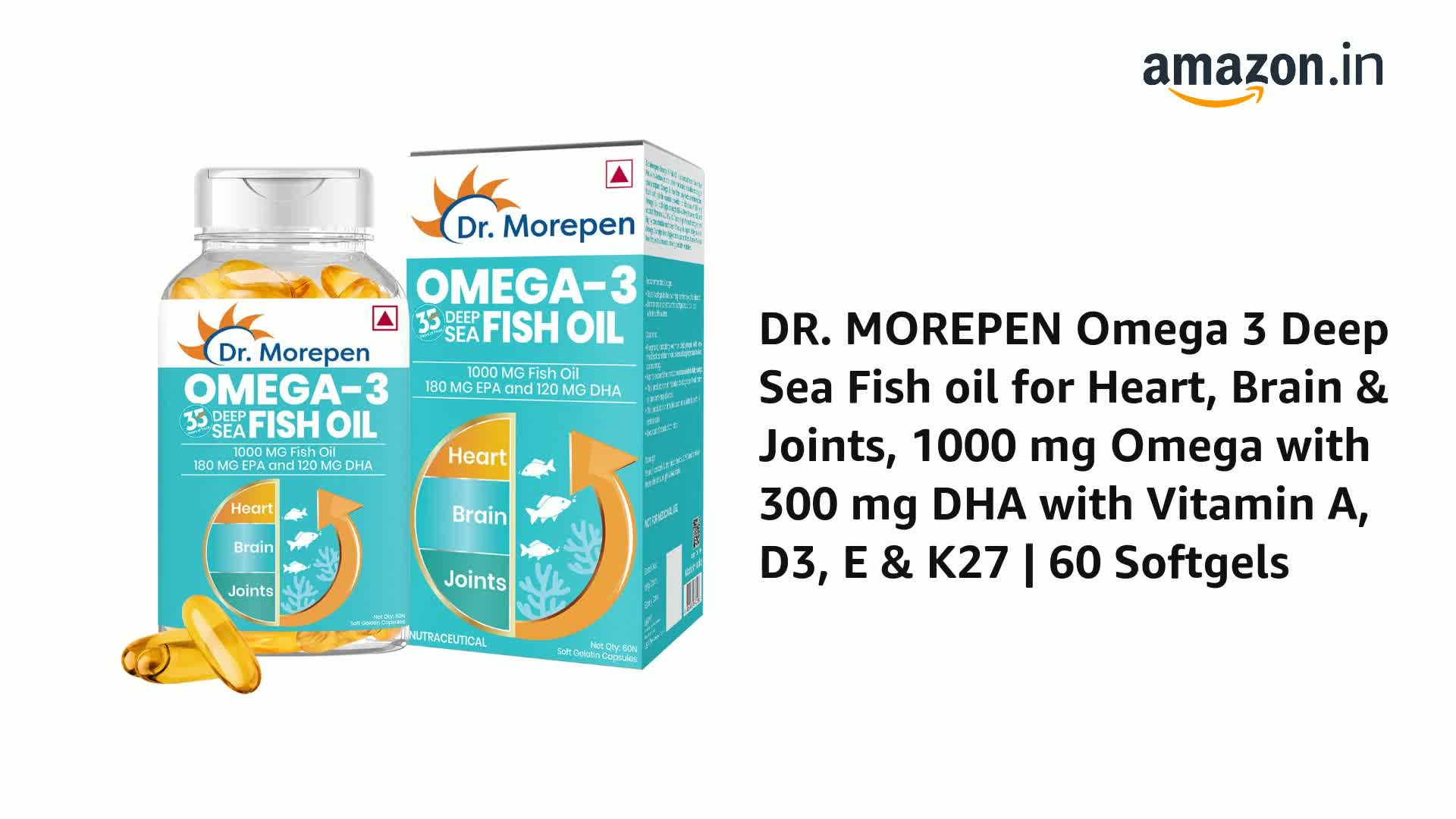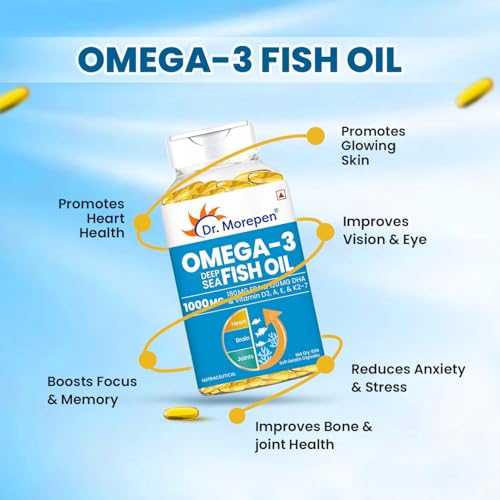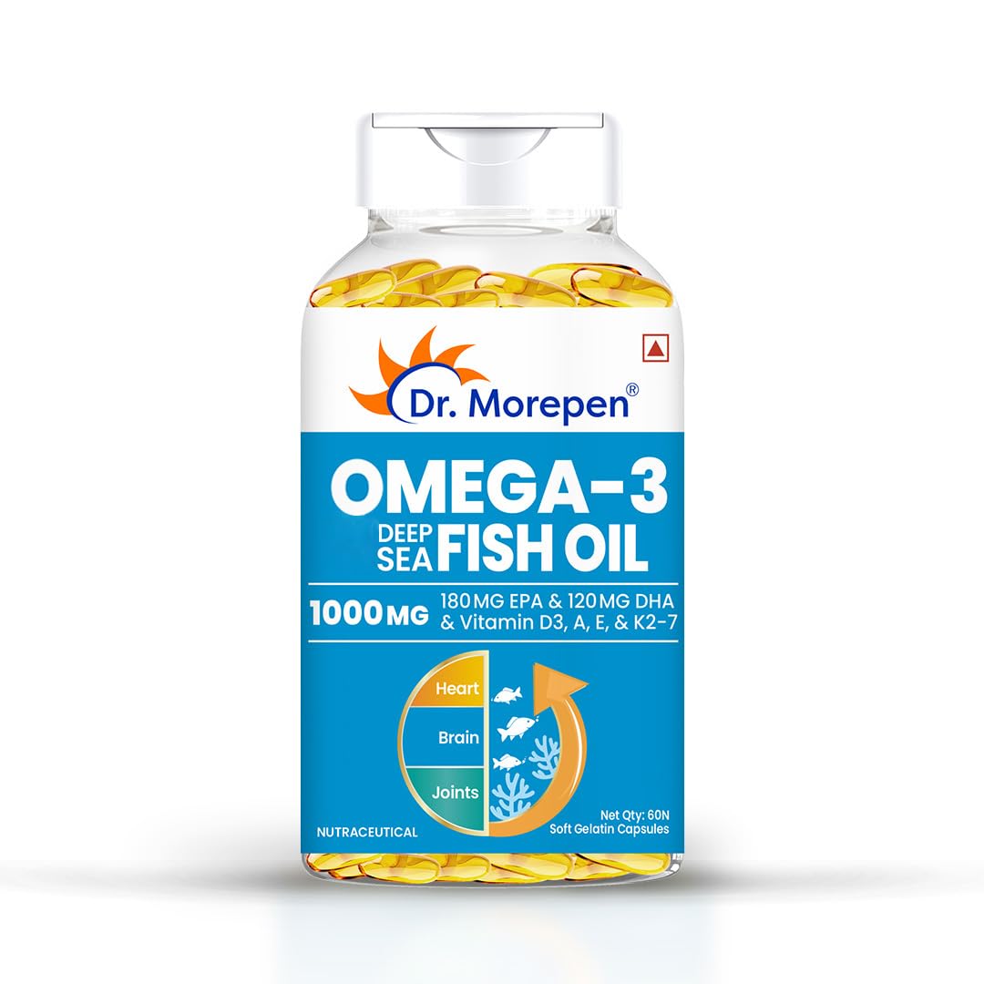 DR. MOREPEN Omega 3 Deep Sea Fish oil 1000 mg Omega with 300 mg DHA with Vitamin A, D3, E & K27 | 60 softgels - (Pack of 1)