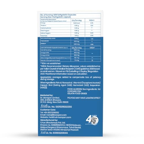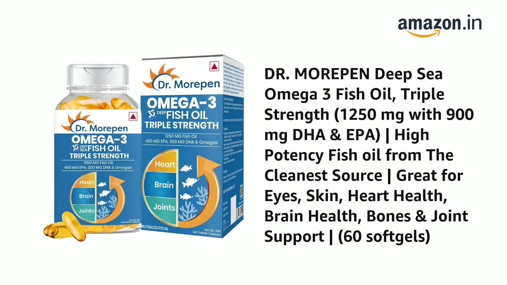 DR. MOREPEN Omega 3 | Deep Sea Fish Oil Triple Strength | 1250mg with 900mg DHA & EPA - 60 Softgels (Pack of 1)