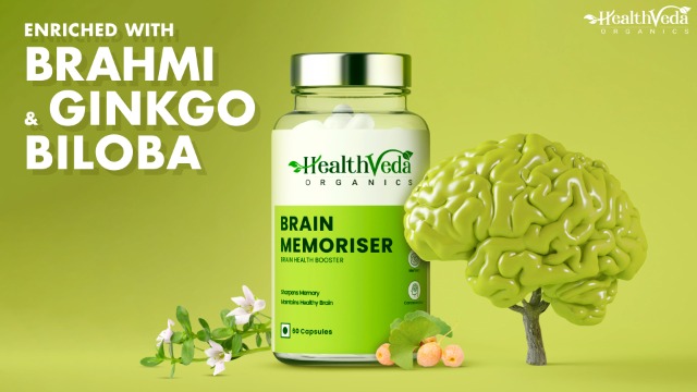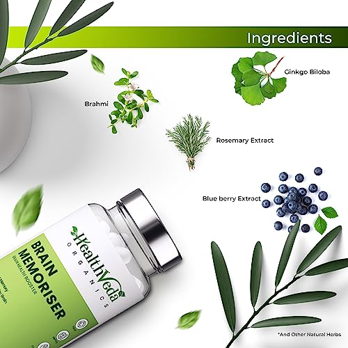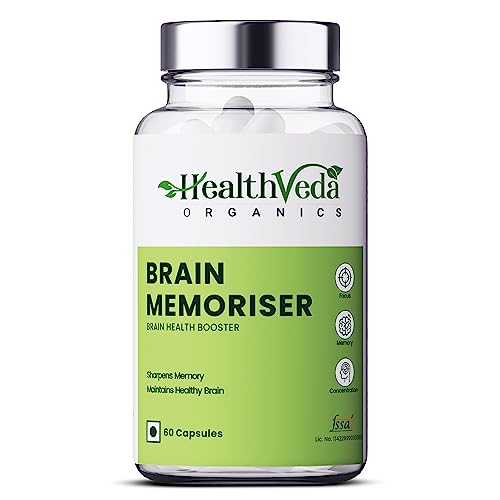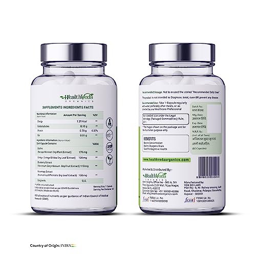 Health Veda Organics Plant Based Brain Memoriser with Ginkgo Biloba & Brahmi I 60 Veg Caps.