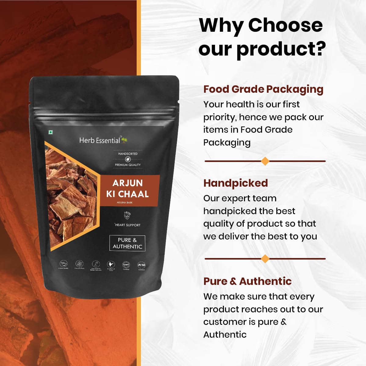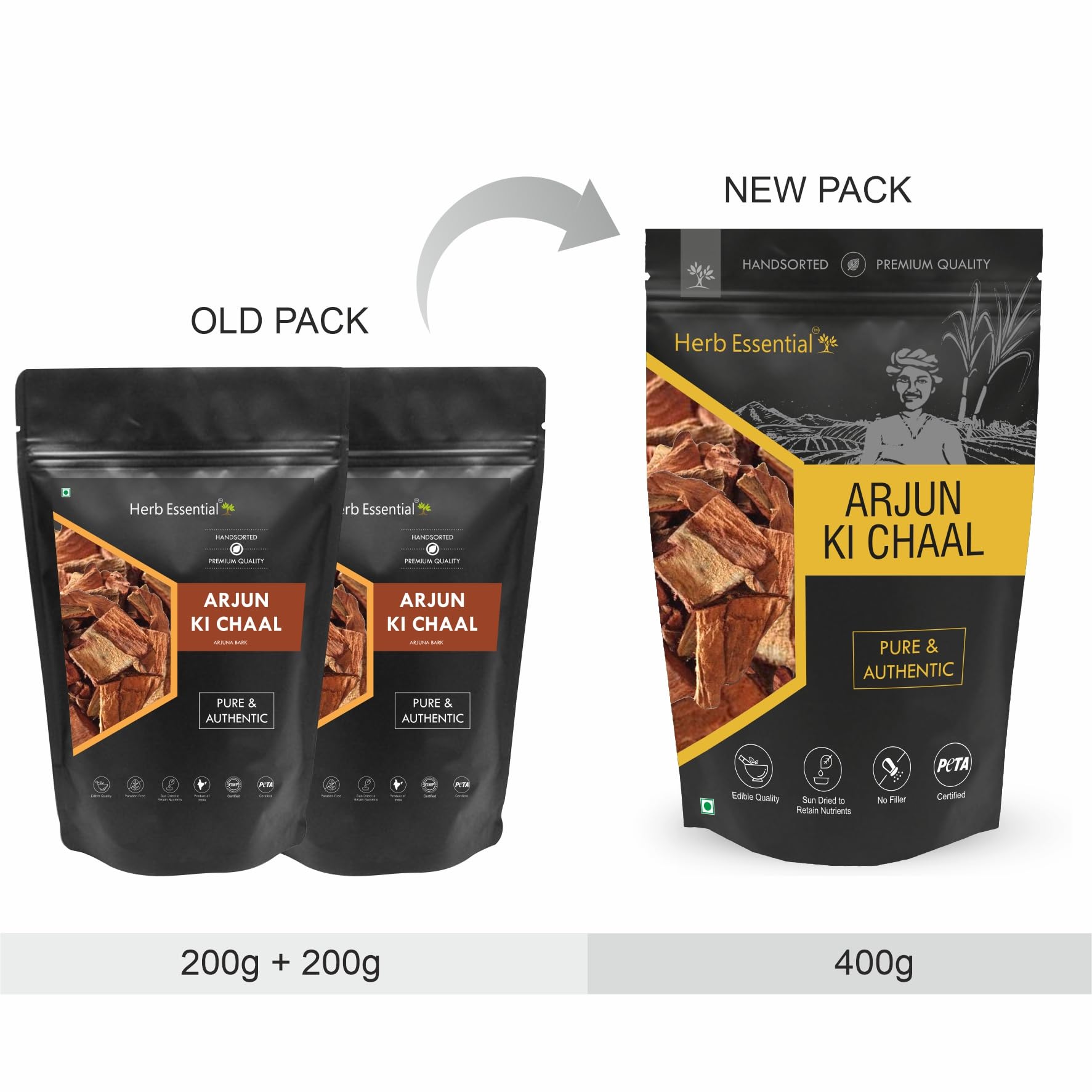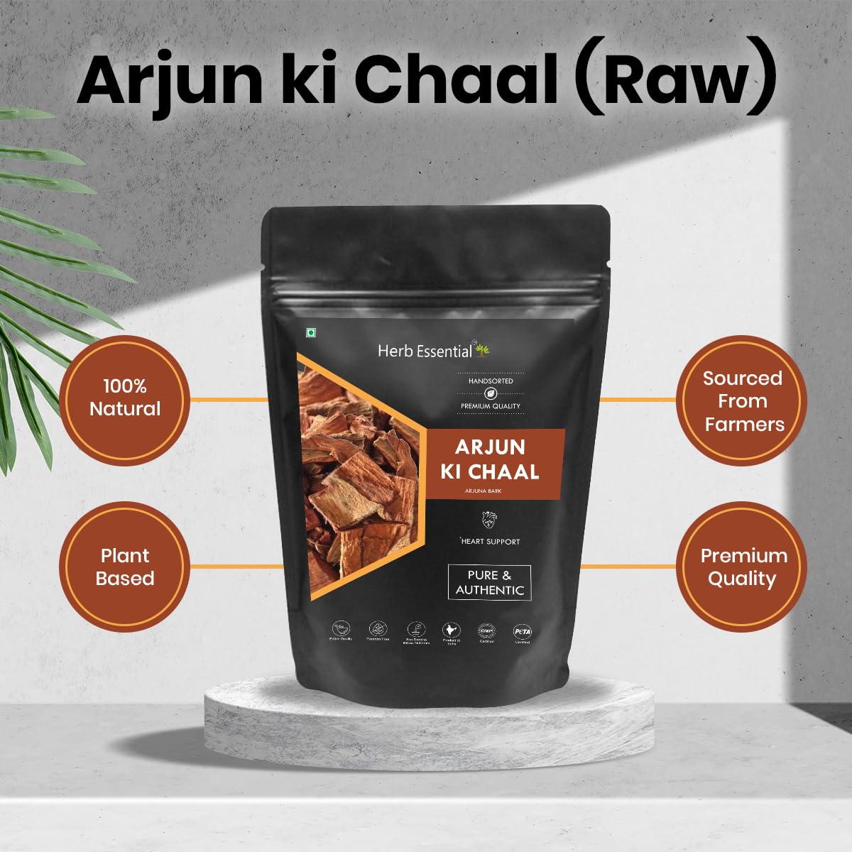 Herb Essential Arjun ki Chaal- Raw |Terminalia Arjuna Bark | Raw - 400g Dry Premium Arjun Tree Bark |For Cardiovascular Health & Lowers Bad Cholesterol | 100% Natural Sun Dried |
