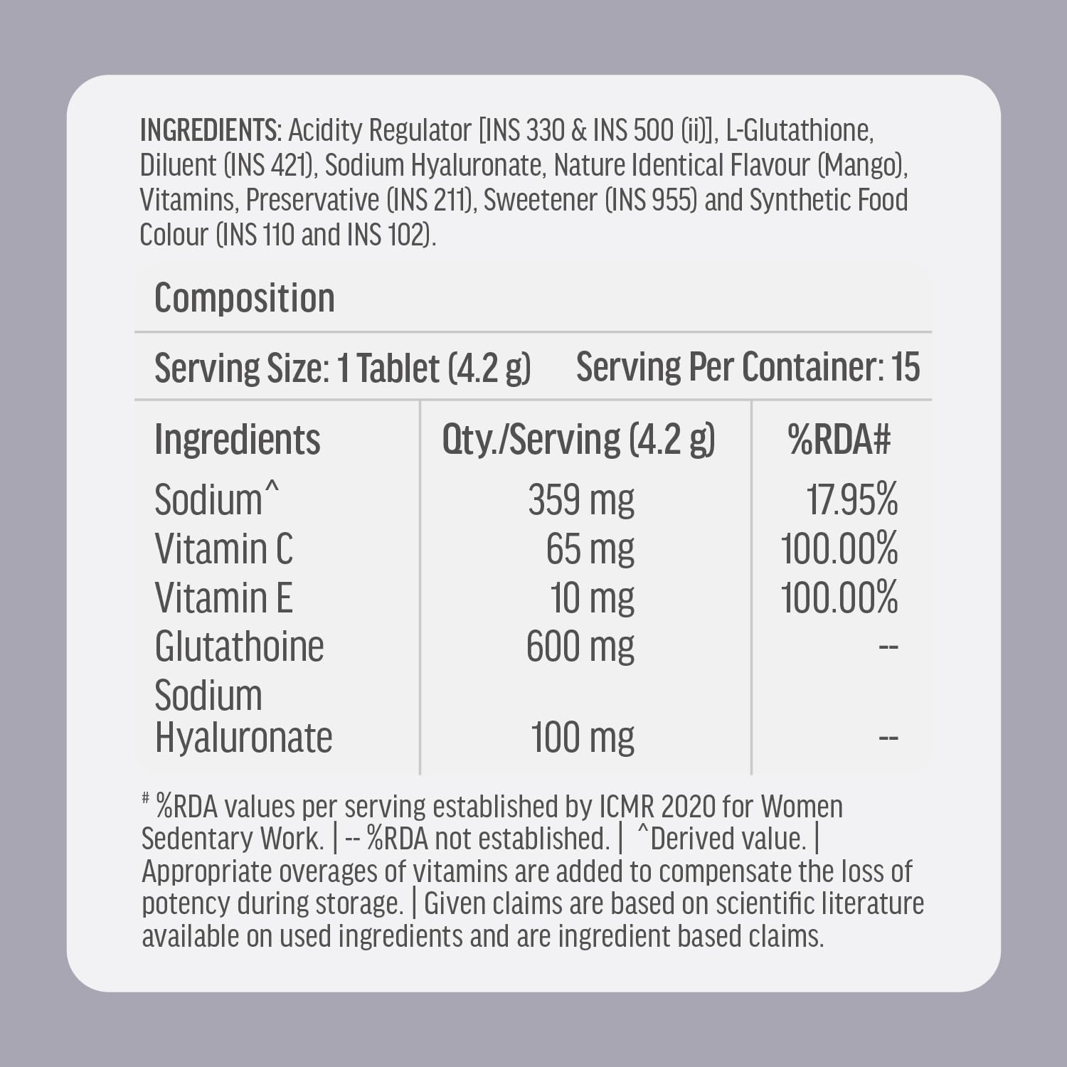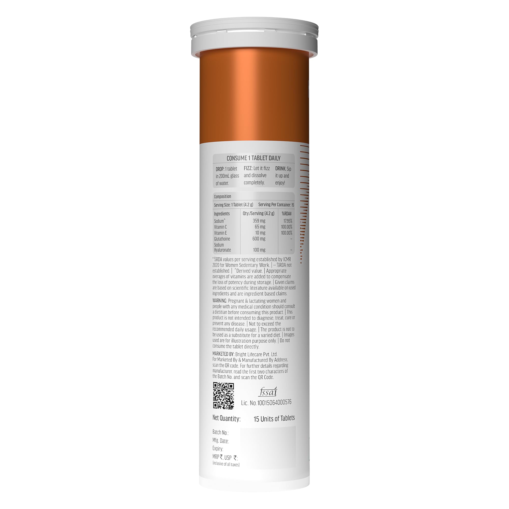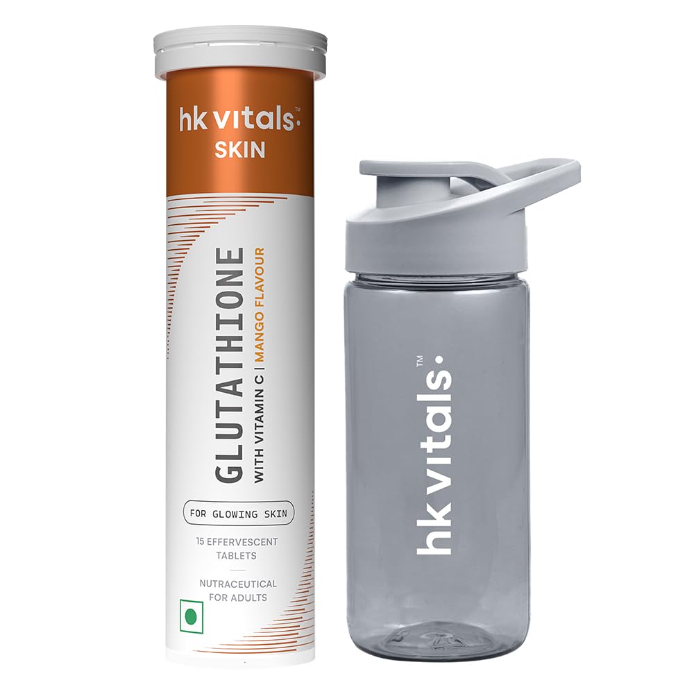 Introducing hk vitals Glutathione Effervescent fizzy tablets that deliver a powerful blend of 600mg L-Glutathione Vitamin C & E. L-Glutathione is a powerful antioxidant which along with Vitamin C & E helps reduce skin dullness and promotes skin glow. Glutathione also helps reduce pigmentation and dark spots by regulating melanin production. One glutathione tablet daily will help improve your skin glow & reduce pigmentation.