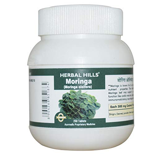 HERBAL HILLS Moringa Tablets Moringa leaf Shugru Drumstick leaf Moringa Oleifera 500 mg 250 Tablets