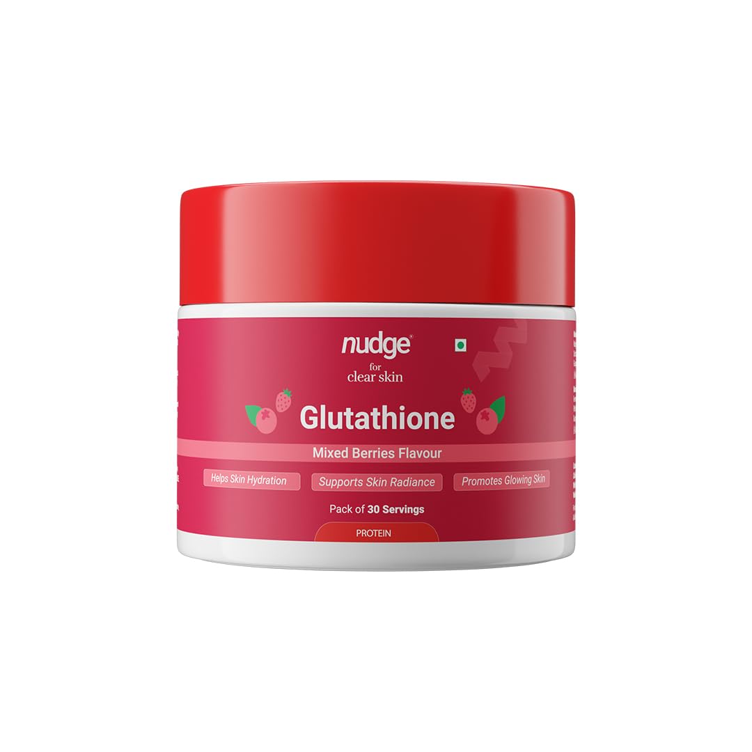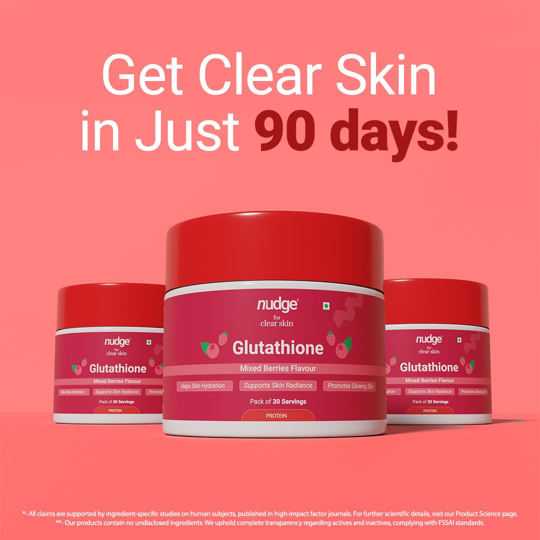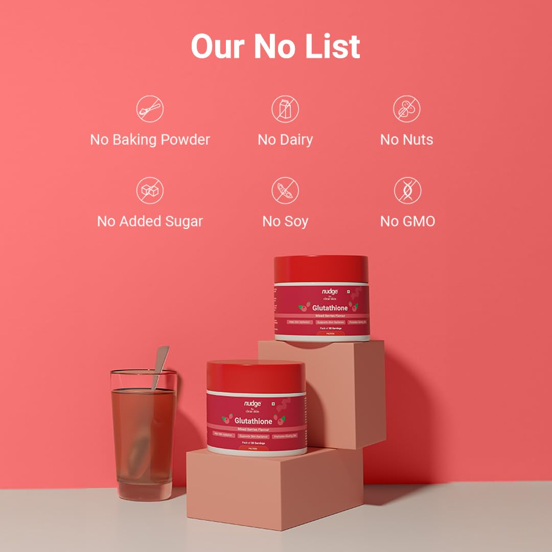 Nudge Glutathione Powder | Promotes Clear & Radiant Skin | Helps Reduce Pigmentation | Supports Anti-Ageing | For Men And Women | No Sugar | No GMO | Pack Of 30 Servings | Mixed Berries Flavoured