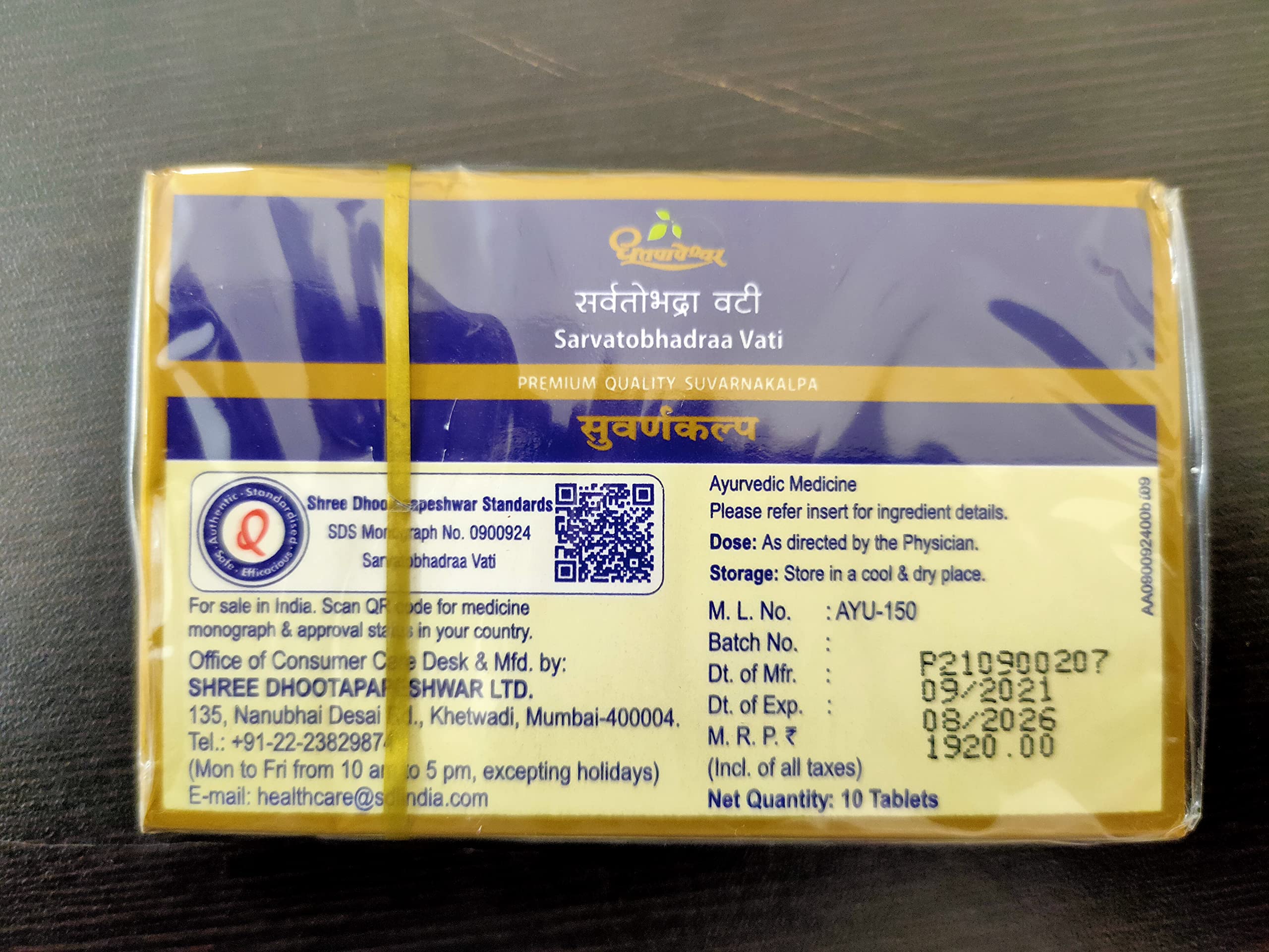 SHREE DHOOTAPAPESHWAR LTD. Sarvatobhadraa Vati - 100 G