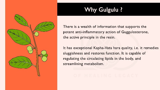 The deeply warming and grounding properties of Gulgulu calms and soothes the erratic vata coursing through the body. Deranged vata is responsible for rigidity and of function in the musculoskeletal system. Regular use of gulgulu supplements help in keeg the joints -free mobile and stable