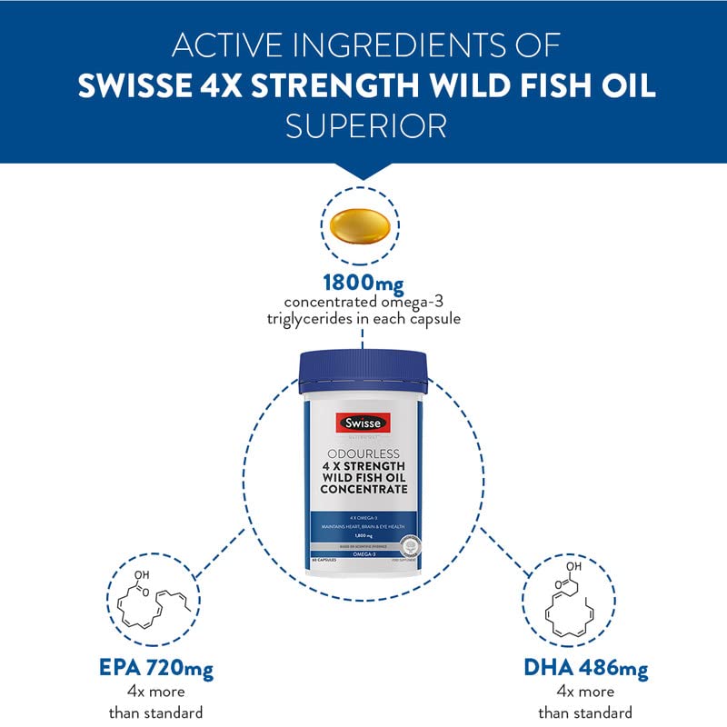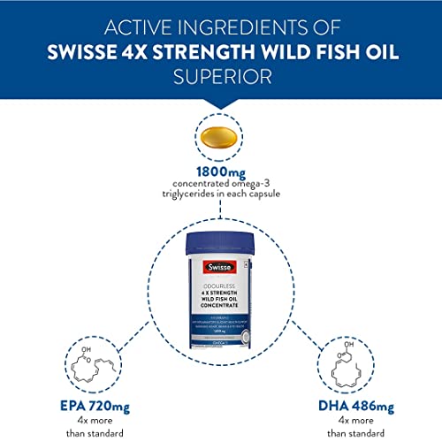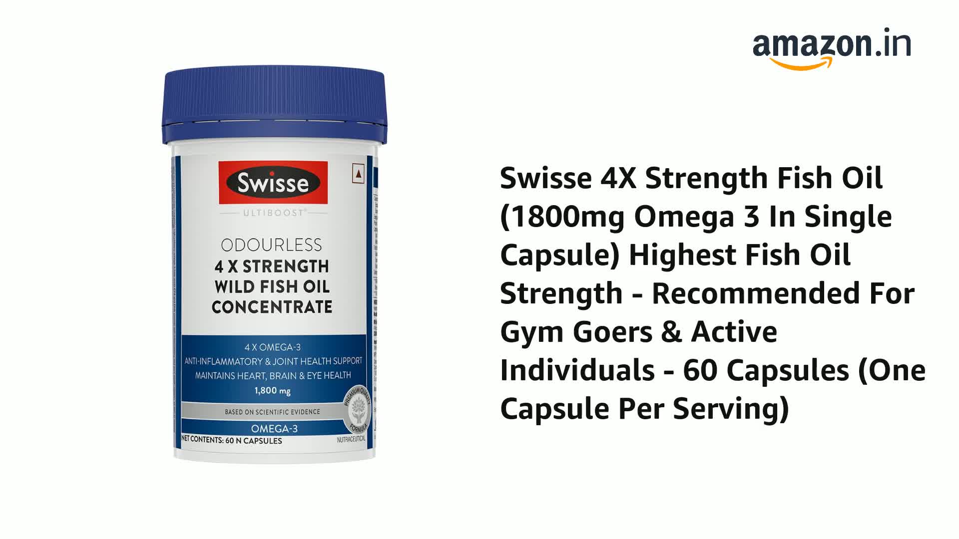 HomeHealth & PersonalDiet & NutritionHealth SupplementsSwisse 4X Strength Fish Oil (1800mg Omega 3 In Single Capsule) Highest Fish Oil Strength - Recommended For Gym Goers & Active Individuals, 60 Capsules (1 Capsule Per Serving)