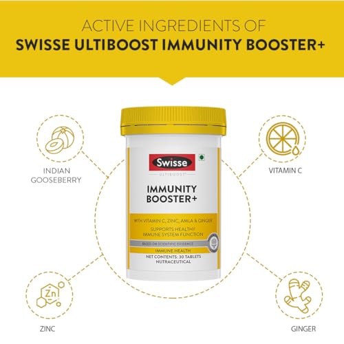 Swisse Immunity Booster+ with Vitamin C & Zinc - Contains Amla & Ginger, All Natural Immunity Booster - 30 Tablets