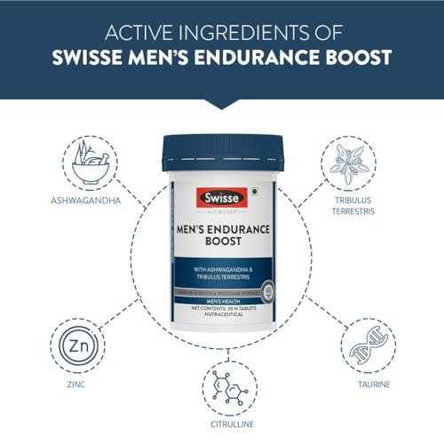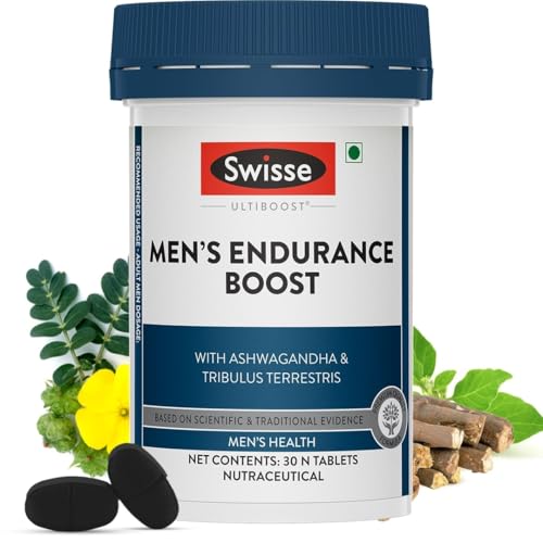 Swisse Men’s Endurance Boost with 150mg Ashwagandha, 80mg Tribulus Terrestris (Gokshura) & Taurine for Performance Boost - Manufactured in Australia - Boosts Strength & Performance (30 Tablets)
