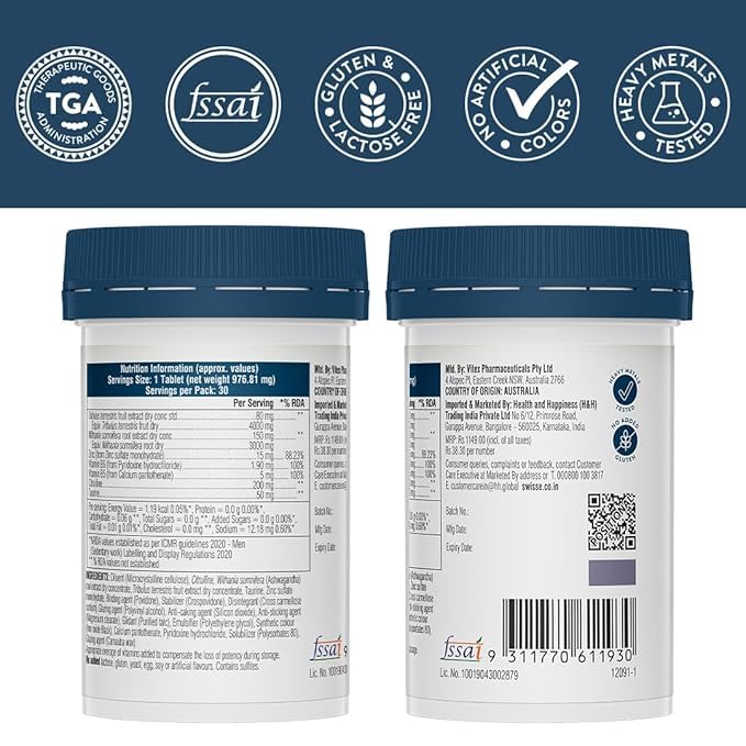Contains Zinc Tribulus Terrestris: commonly called Gokshura Withania Somnifera Root: also known as Ashwagandha & Taurine