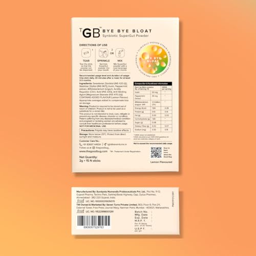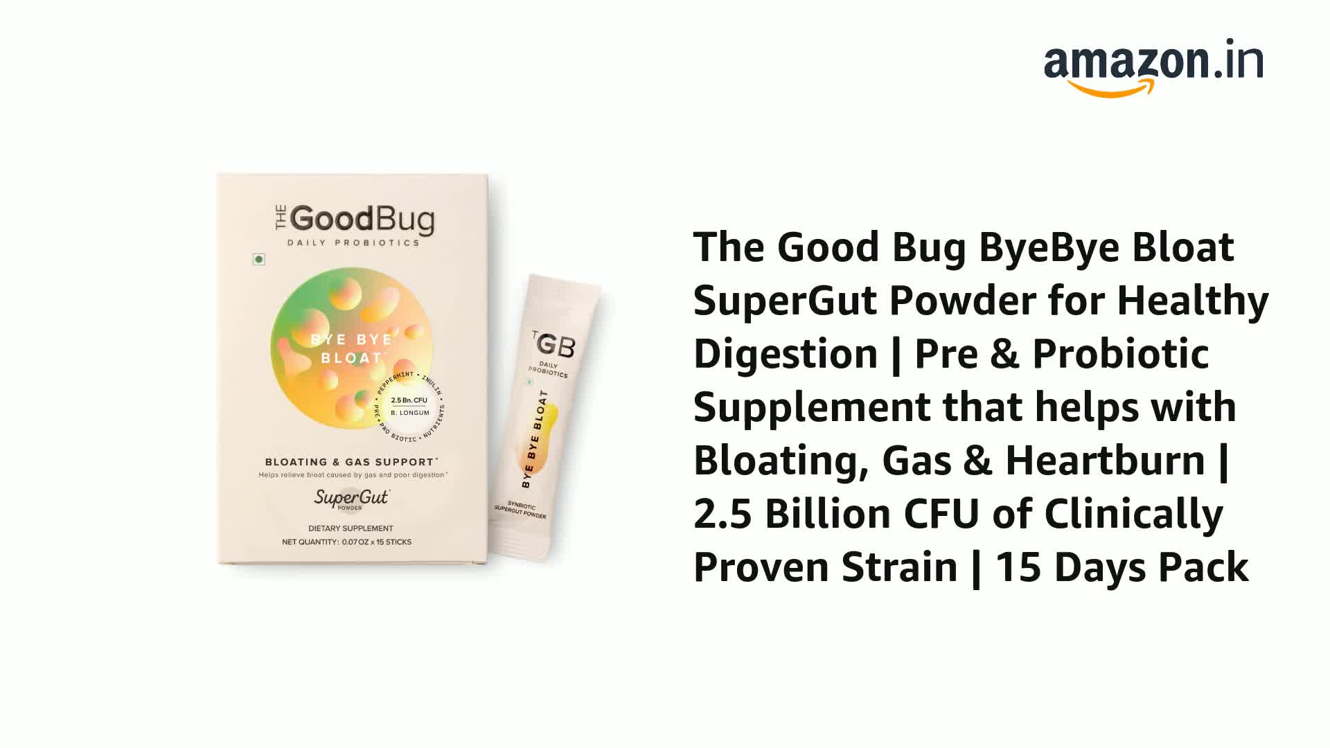 The Good Bug Bye Bye Bloat Supergut Powder For Gut Health & Strong Digestion | Pre & Probiotic Supplement | Helps With Bloating, Gas & Heartburn | 2.5 Billion Cfu Of Clinically Proven | 15 Days Pack