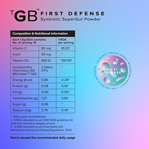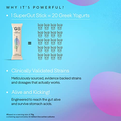 • DAILY GUT & SELF-CARE IN A STICK! India's first-of-its-kind Synbiotic stick with a unique formulation of precision probiotic strains of Lactobacillus bacteria potent prebiotic fibre & the goodness of valuable nutrients that will repopulate your gut with h