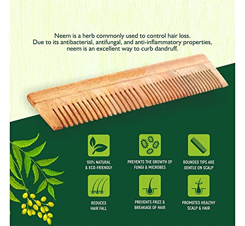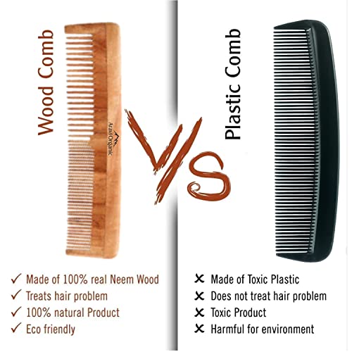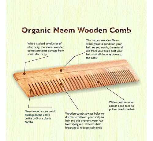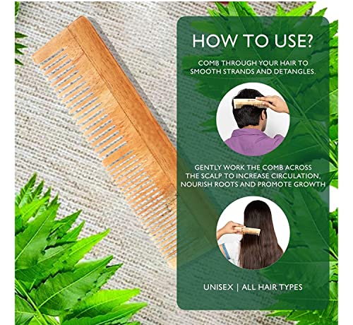 Aravi Organic Neem Wood Comb Fine & Wide Tooth to Promote Hair Growth & Hair fall