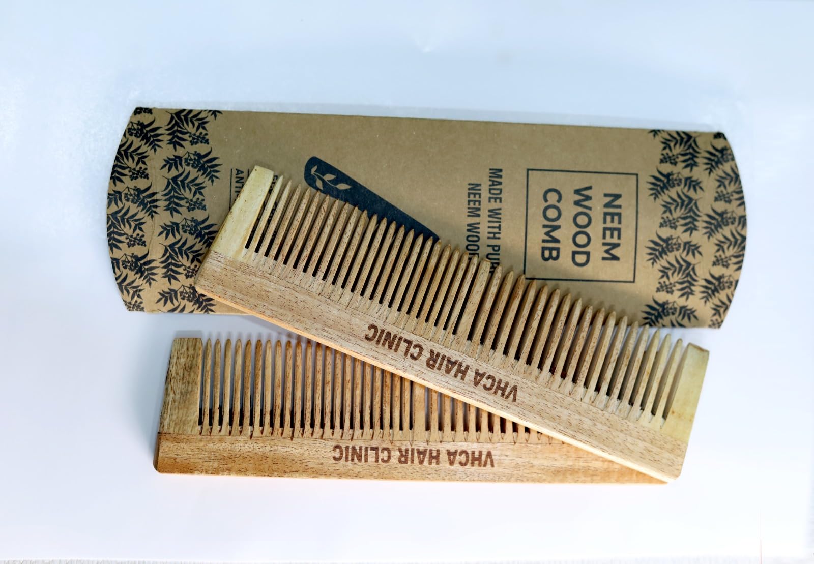 Natural Hair Health: r-Poid Herbal Neem Comb crafted from young juicy neem wood and infused with 17 herbs promotes hair growth controls hair fall and combats dandruff. Ideal for both men and women.Oil & Herb Treated: Neem Comb Is Pre-Soaked & Treated With Neem Oil Coconut Oil Castor Oil Sesame Oil Neem Leaves Bhringraj Amla Curry Leaves And Other Herbs & Oils. 17 Herbs Used To Soak & Treat The Comb. This Kachi Neem Wooden Comb helps you to make your hair tangle-free and also helps you to style your hair with zero hair fall. This VHCA Wooden Neem Comb helps you to remove dandruff from your hair. Pack of 2