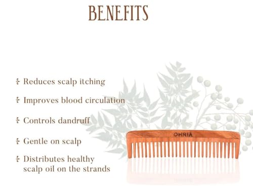Natural comb to arrest hair fall balding dandruff and itchy scalp. Gentle on hair & scalp nontoxic it prevents static hair. Natural comb improves blood circulation helps hair grow long lustrous and healthy combing distributes the healthy scalp oils on strands adding shine. All energies converge in the head wooden comb balances all external and internal energies.