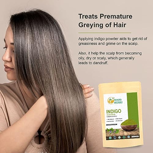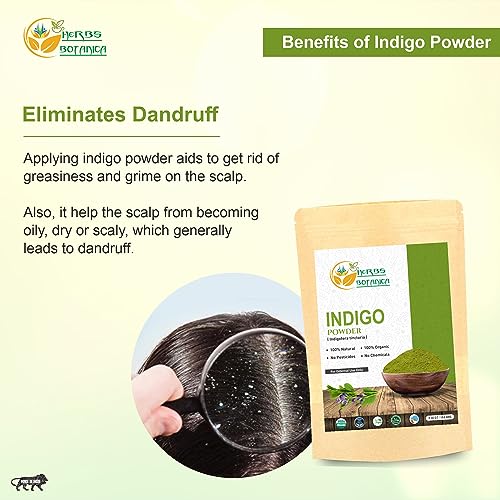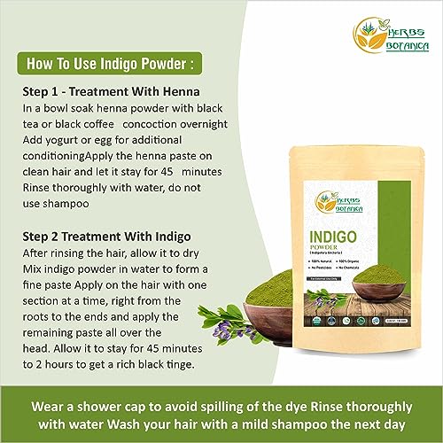 Herbs Botanica Indigo Powder For Hair - Indigofera Tinctoria (100% Natural Organically Henna Grown) 150 Grams / 5.3 Oz Natural Black Hair Dye Natural Henna Herbs and Corps