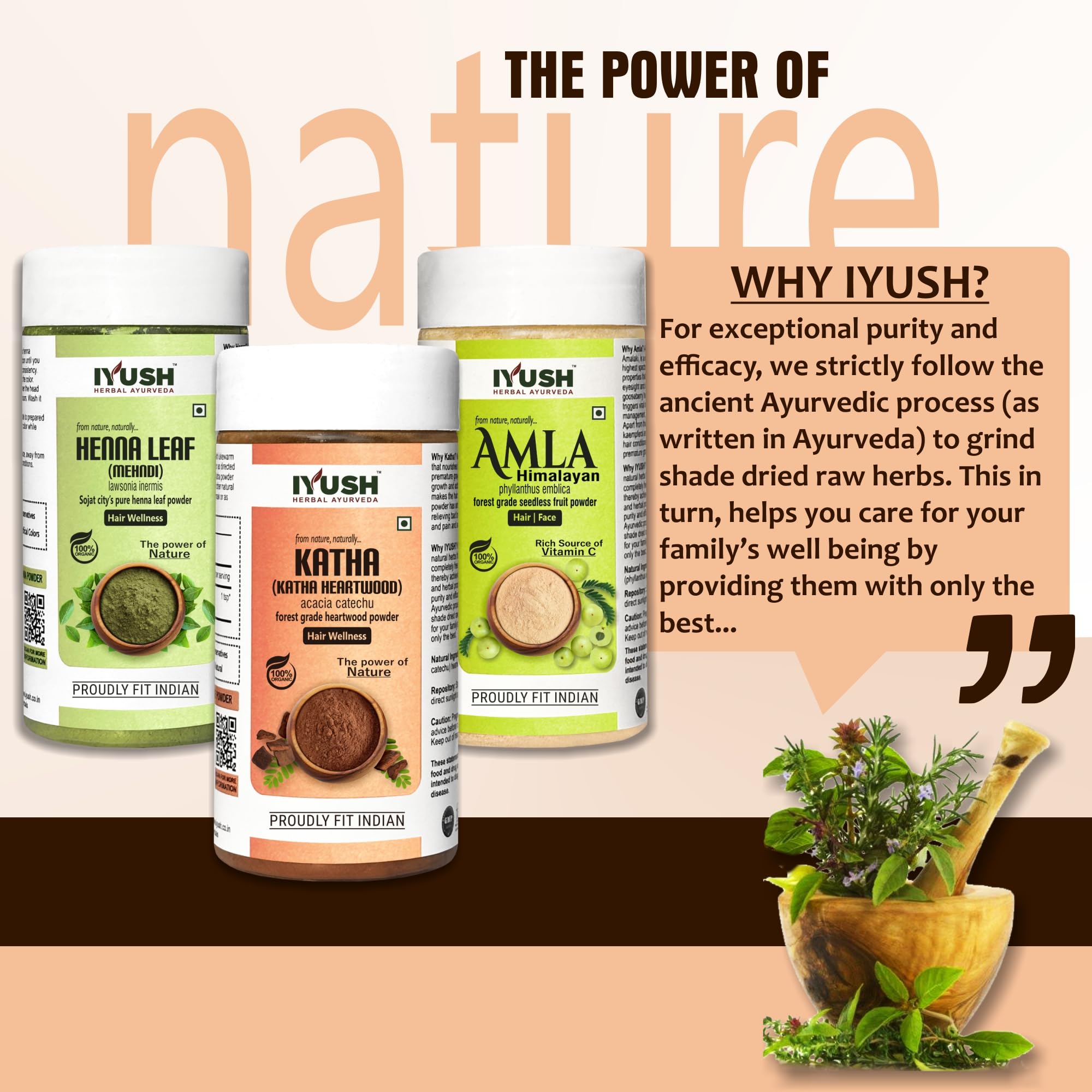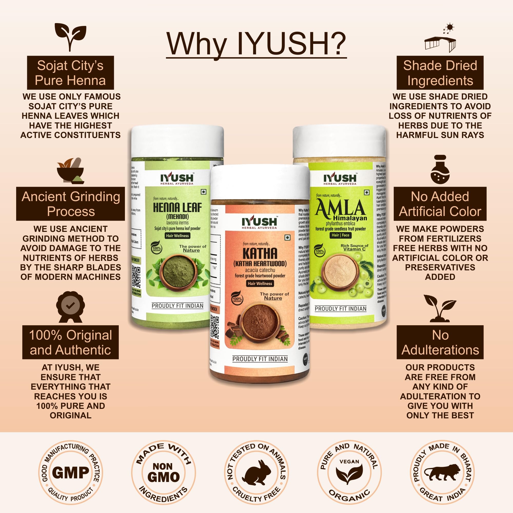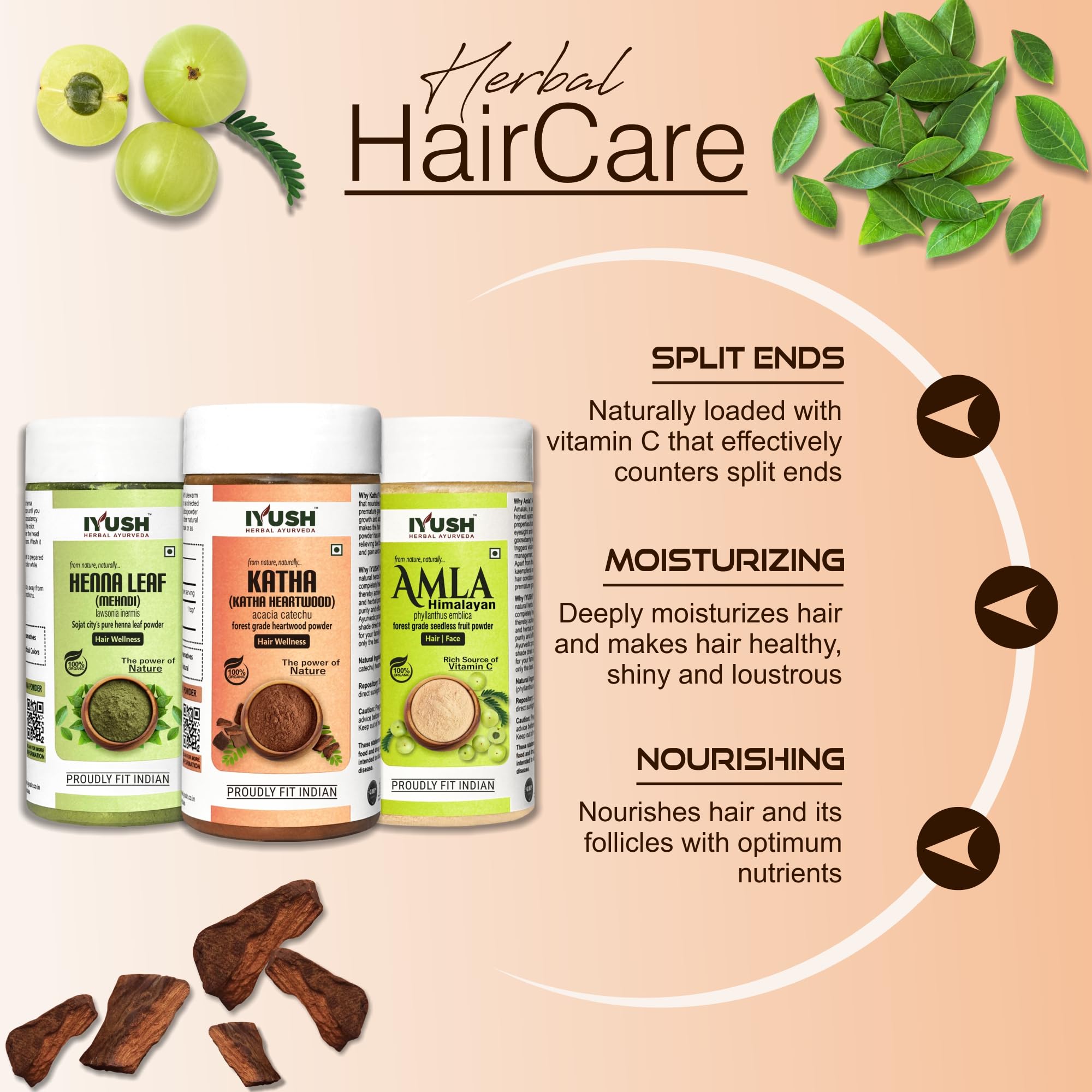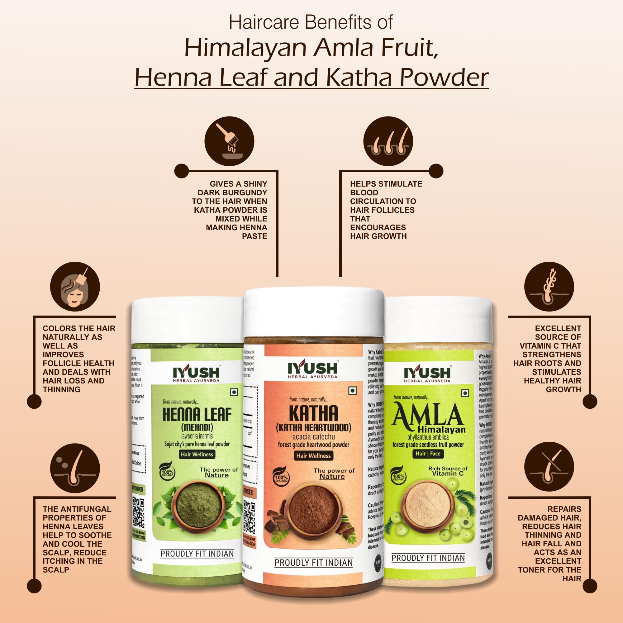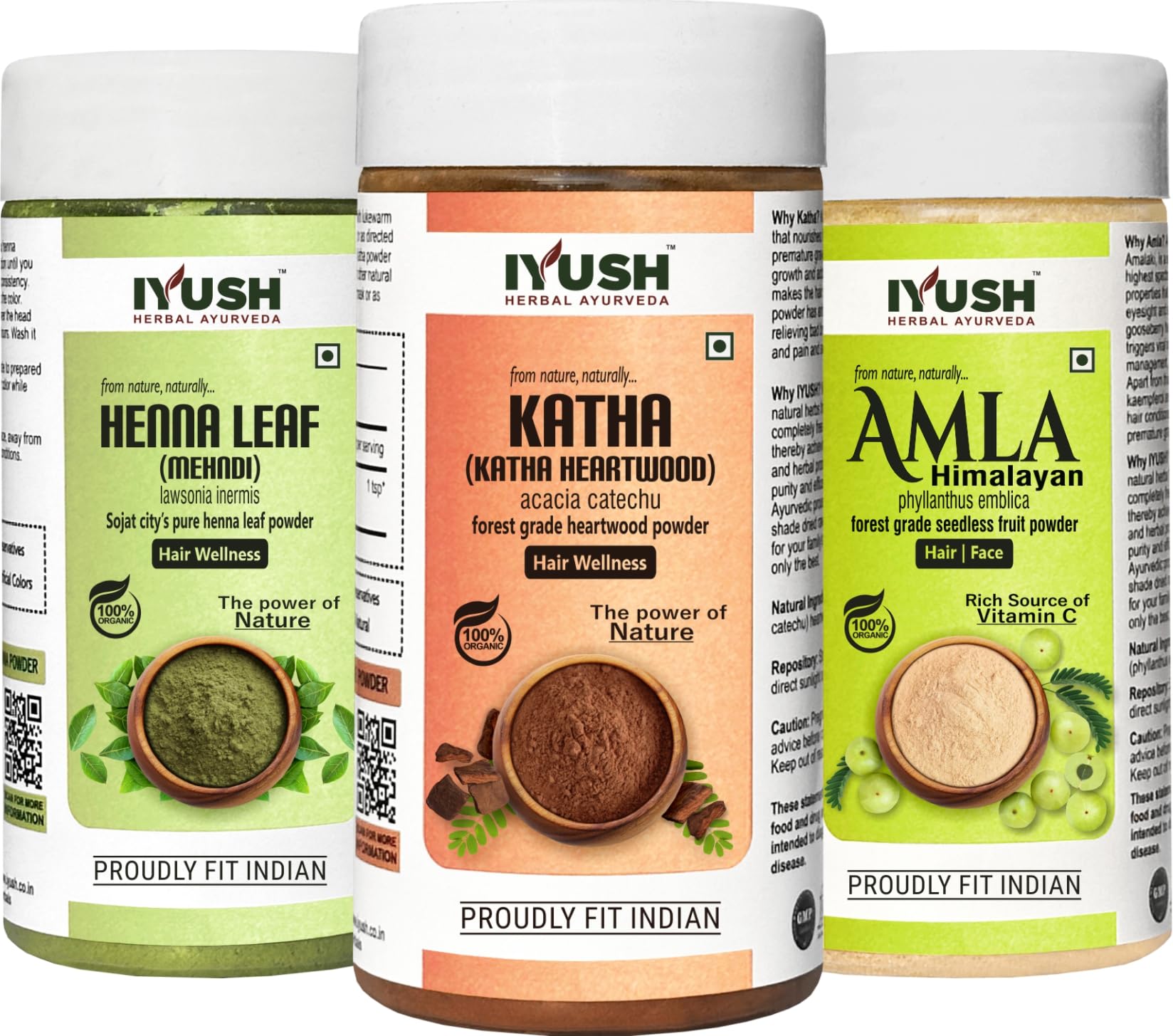 IYUSH Herbal Ayurveda Amla Powder with Katha Powder for Hair and Henna Powder for Hair Colour 300gm | Natural Hair Colour | Hair Volume Powder | Hair Mask for Dry and Frizzy Hair | 100gm each