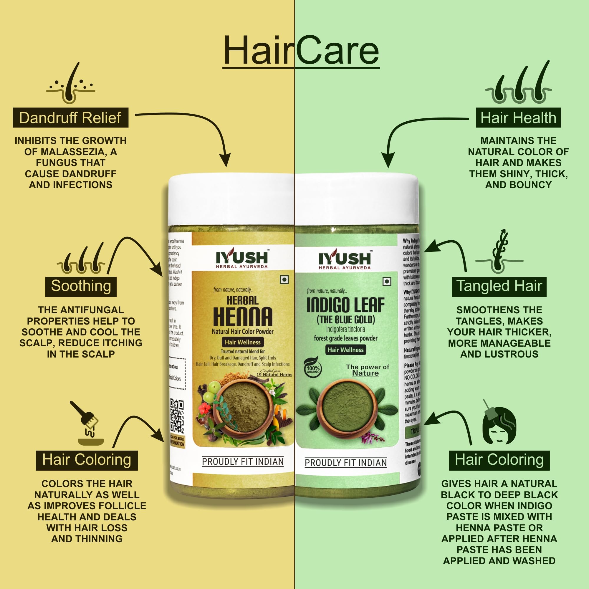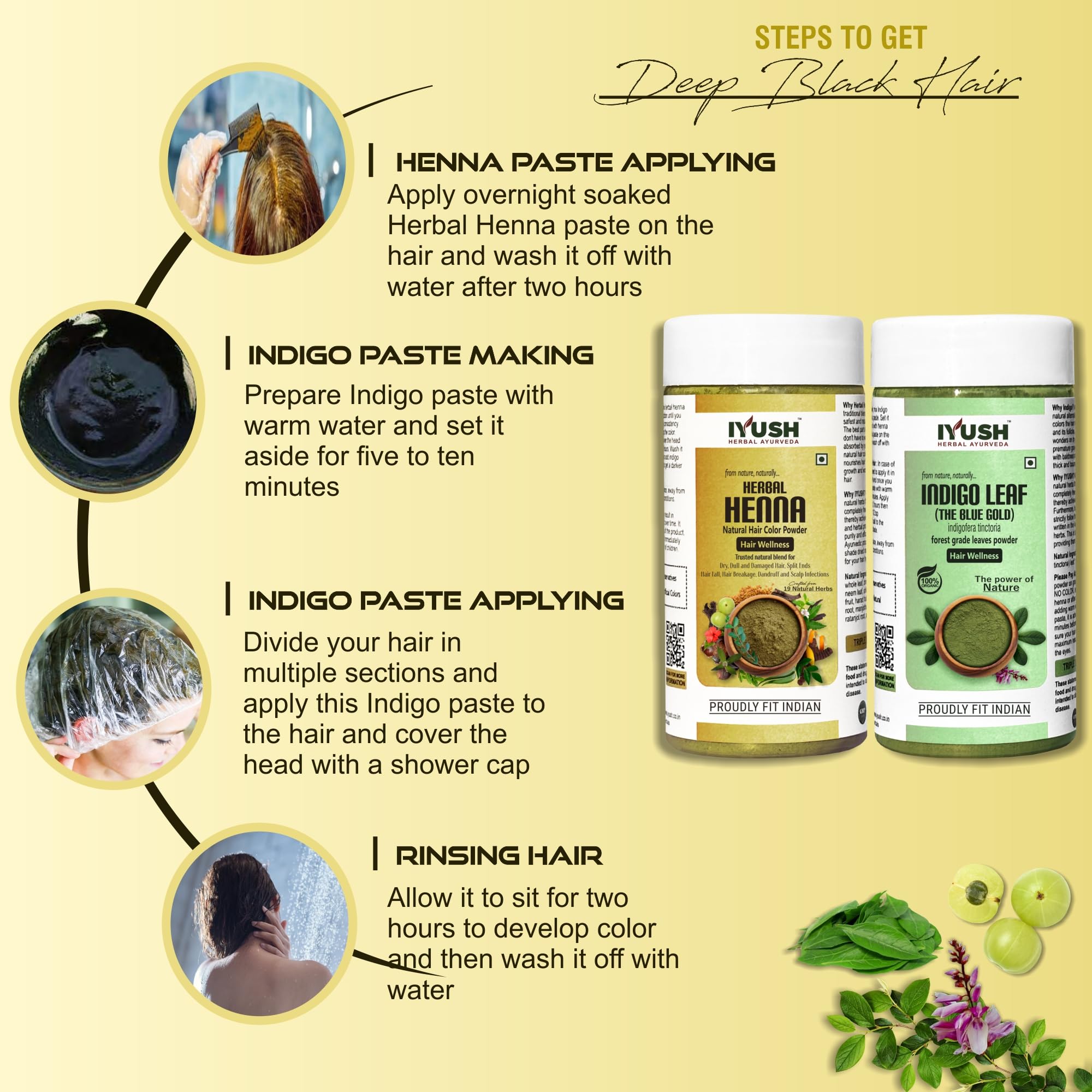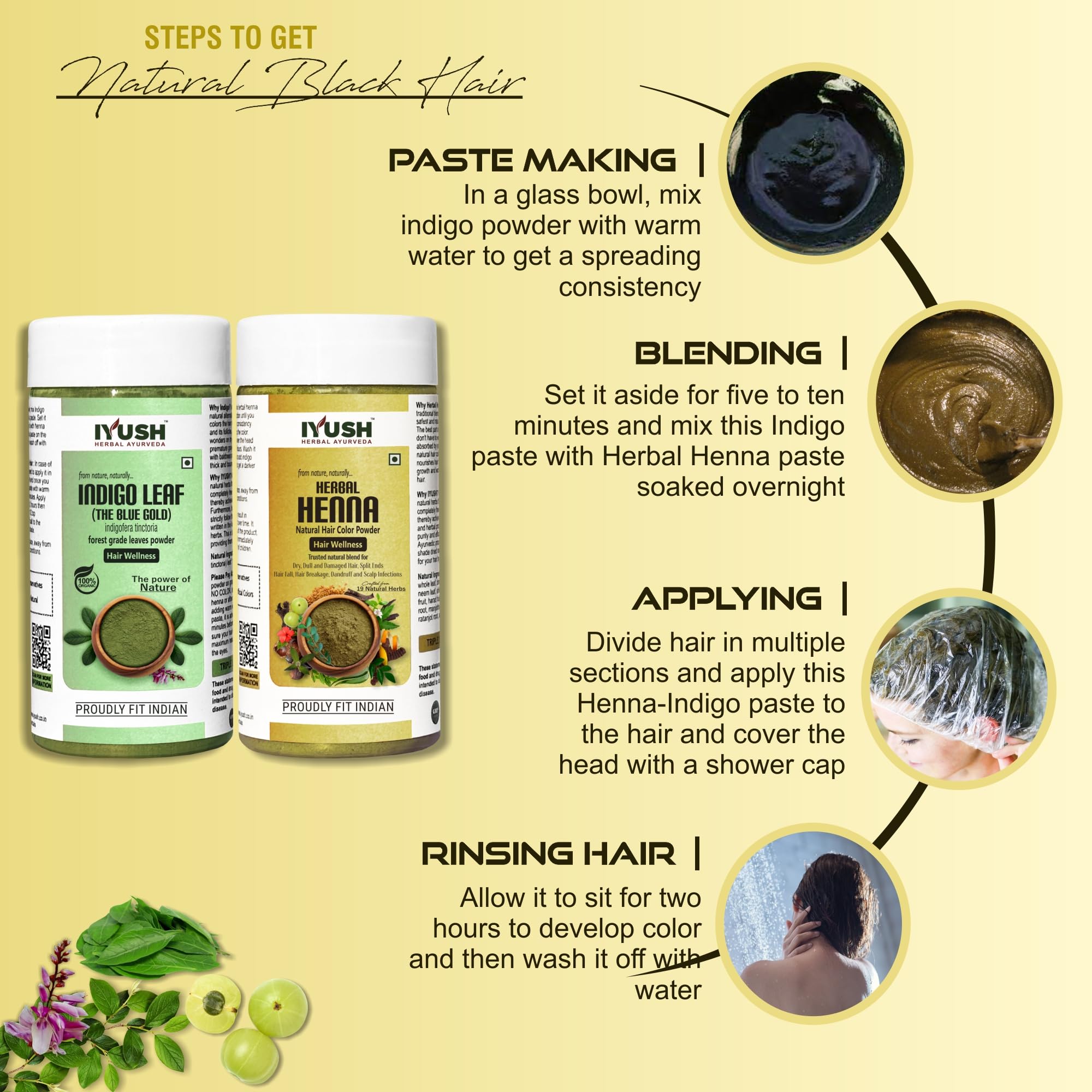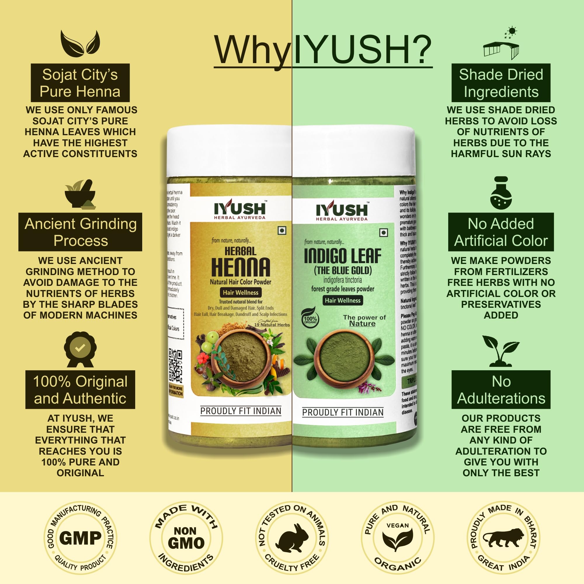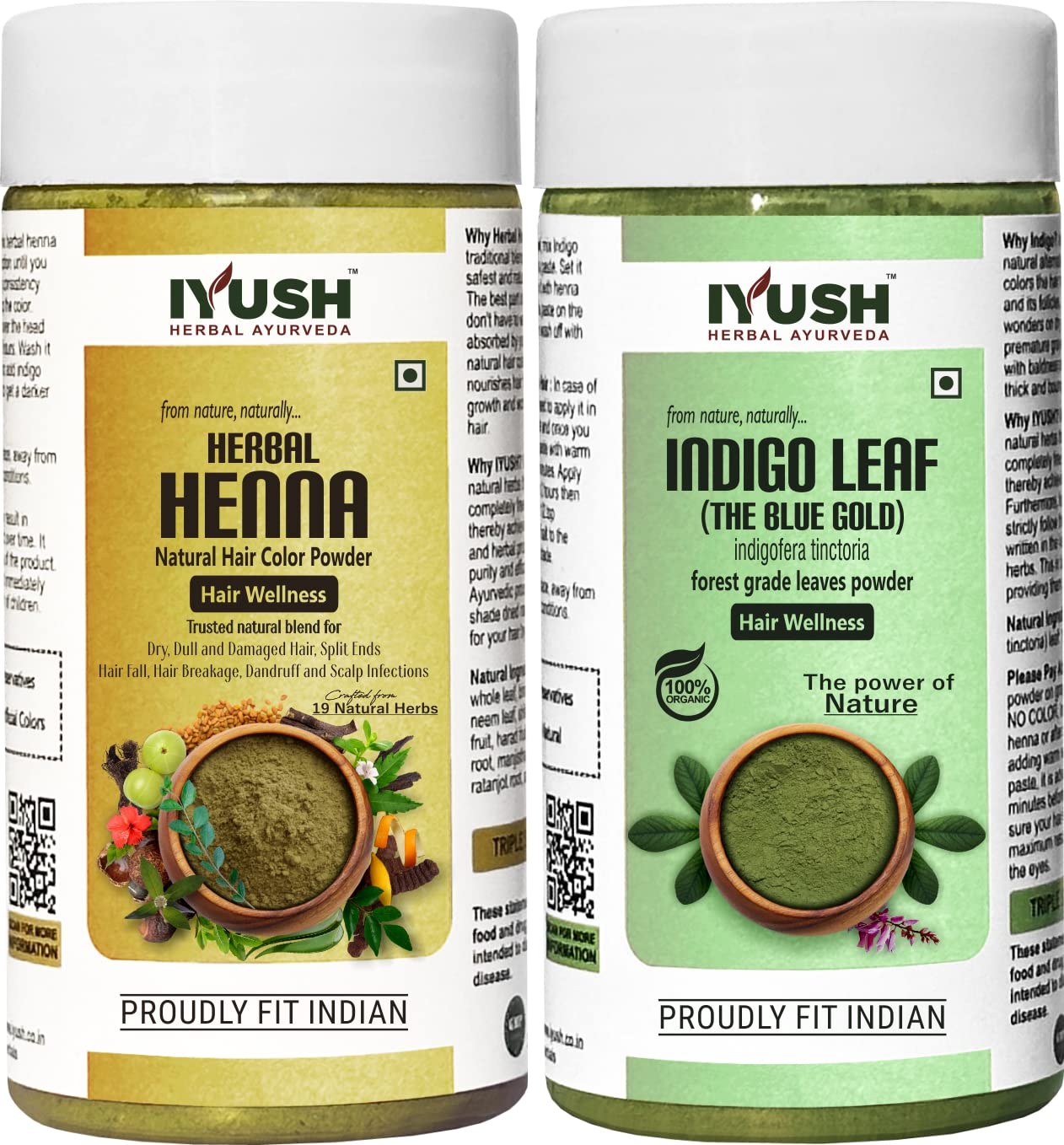 IYUSH Herbal Ayurveda Herbal Henna and Indigo Powder 200gm | Indigo Powder Organic for Hair and Herbal Mehndi for Hair Color | Natural Hair Colour without Chemical | Herbal Hair Colour | 100gm each