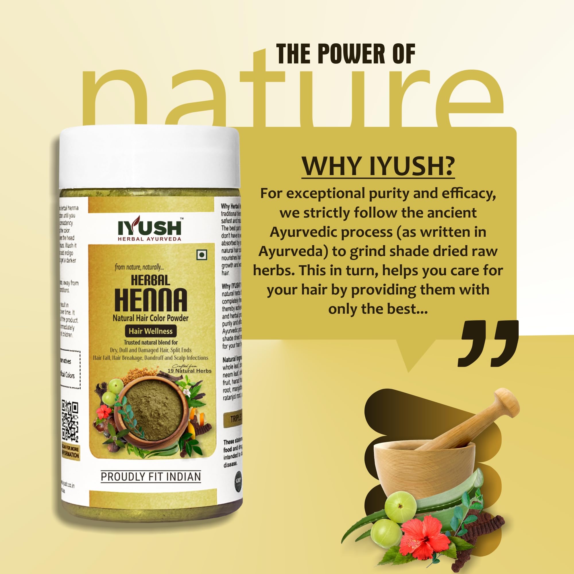 IYUSH Herbal Ayurveda Herbal Mehndi for Hair with 19 Natural Herbs 250gm | Herbal Mehandi for Hair | Herbal Henna Powder for Hair | Natural Hair Colour | Herbal Hair Colour |