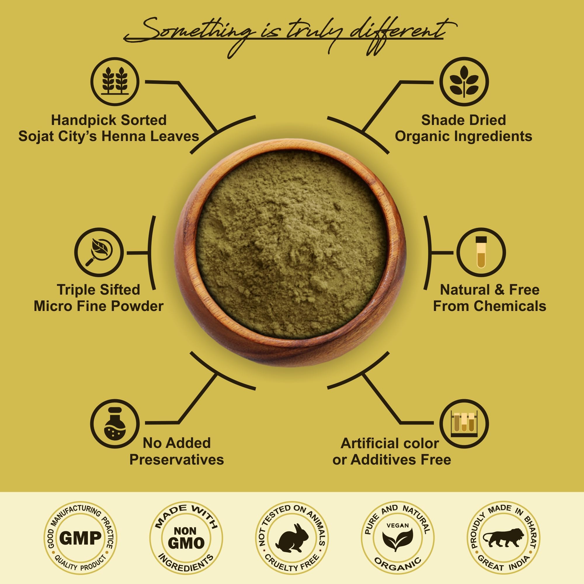 Made From Shade-Dried Natural Herbs: Herbal Henna powder is an organic natural powder made from shade-dried wild forest grade ingredients which contain the highest active nutrients grown naturally without any harmful chemicals or pesticides or fertilizers