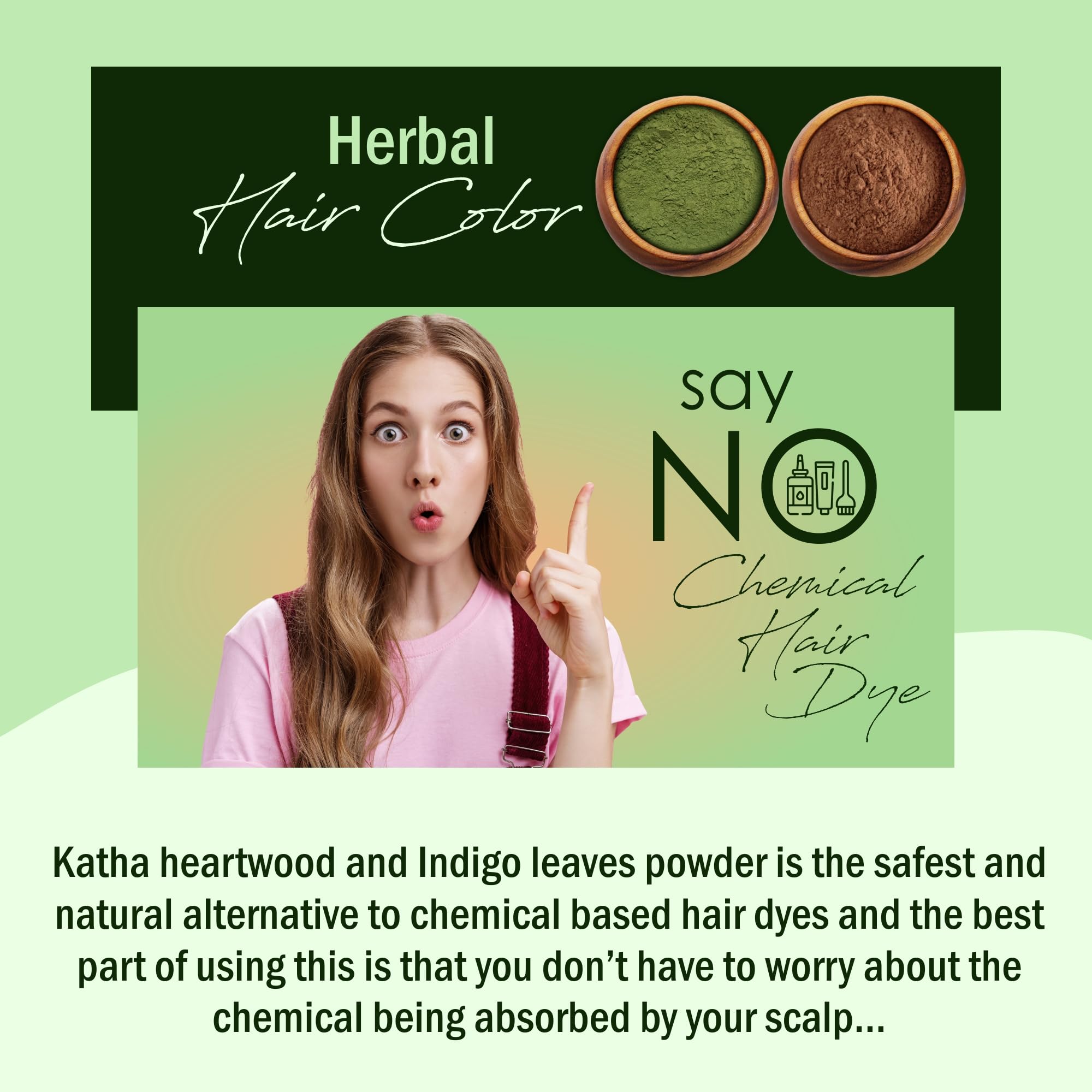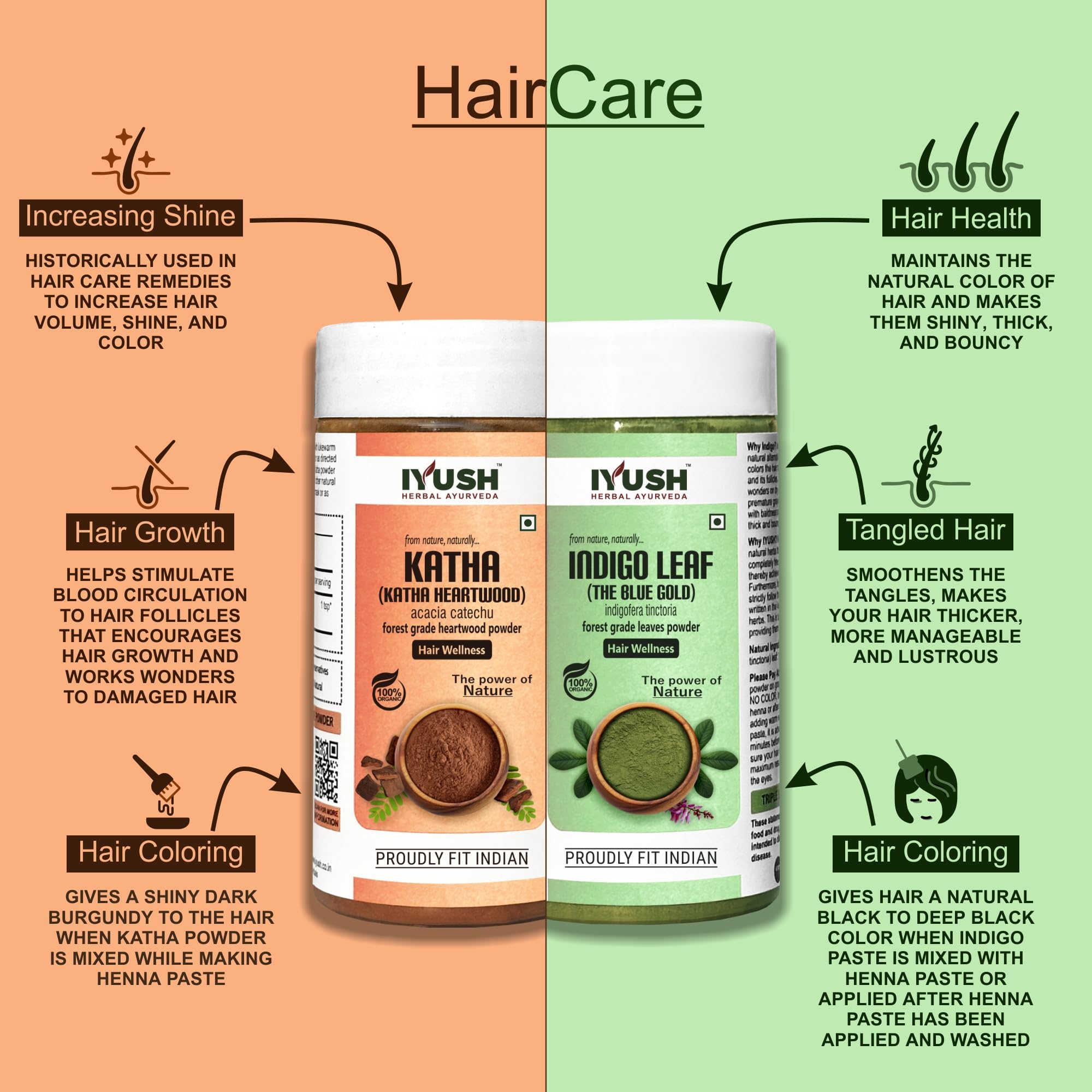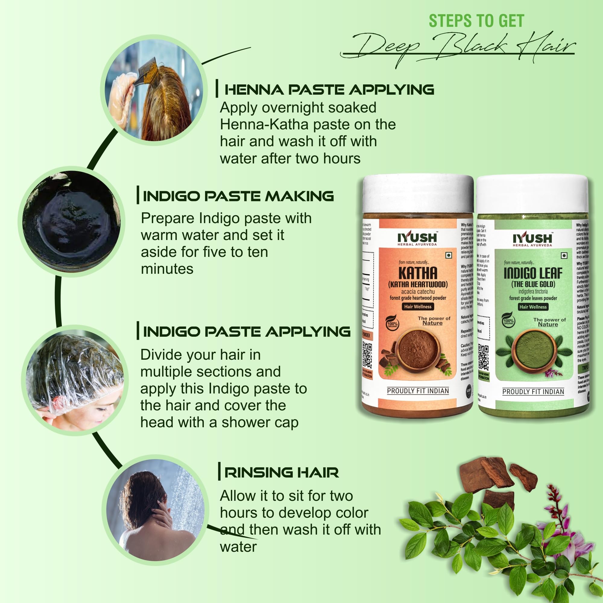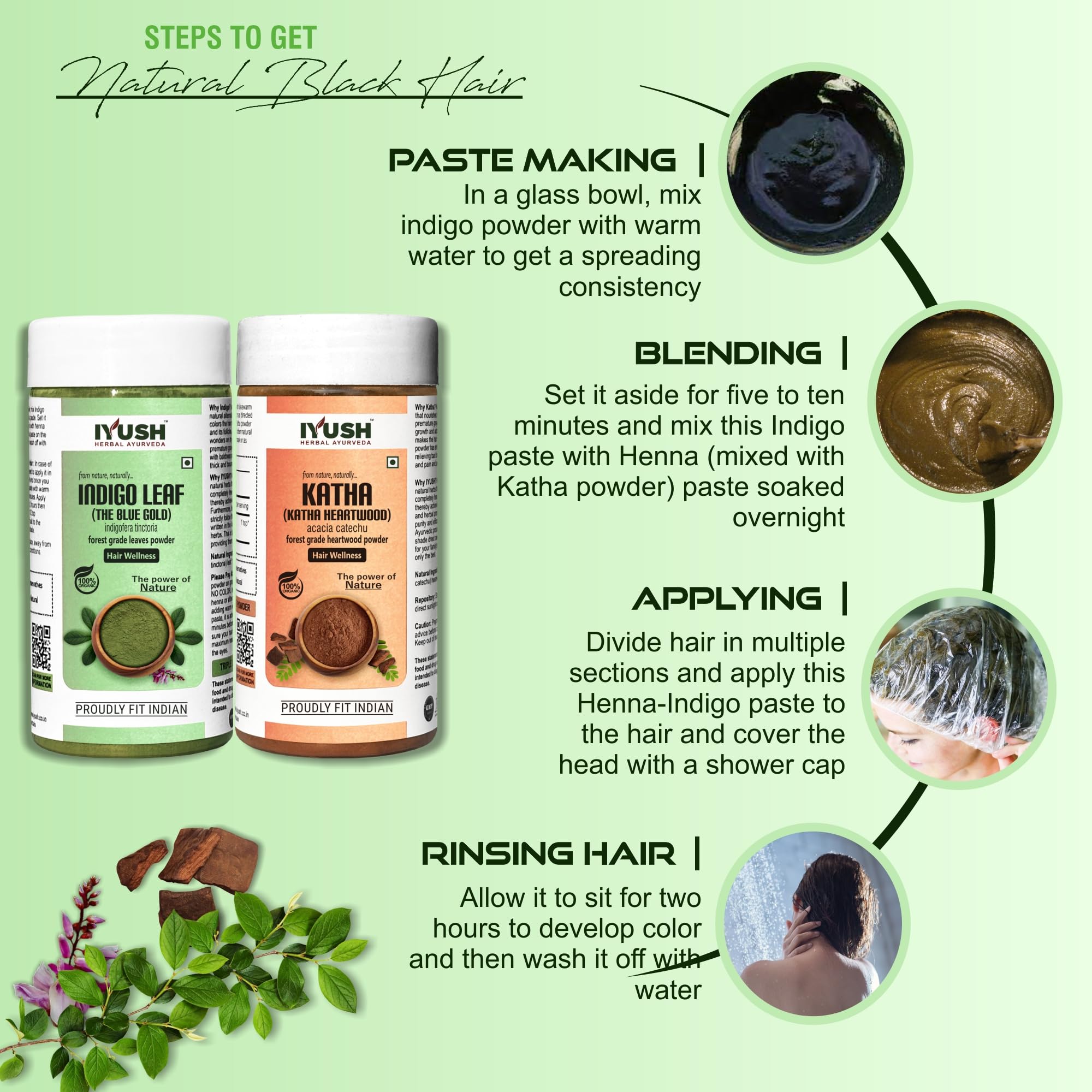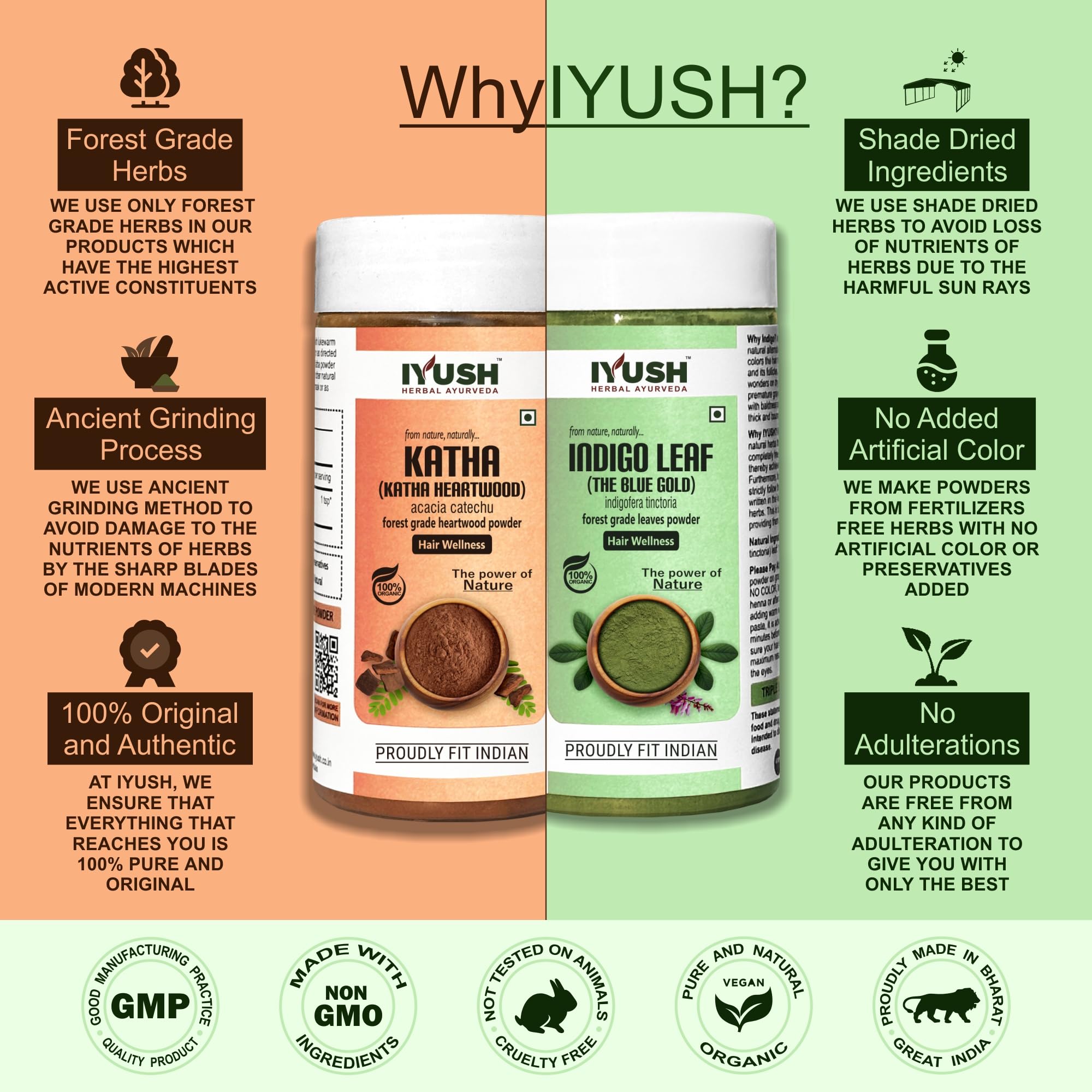 IYUSH Herbal Ayurveda Indigo Powder and Katha Powder for Hair 200gm | Indigo Powder Organic for Hair Color with Katha Powder | Hair Volume Powder | Hair Powder | Hair Pack | 100gm each